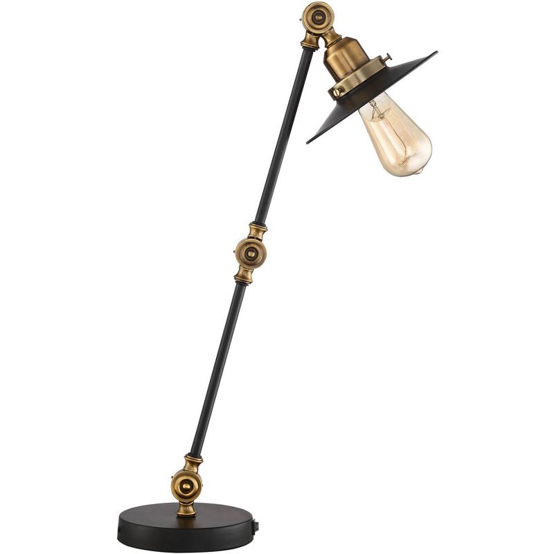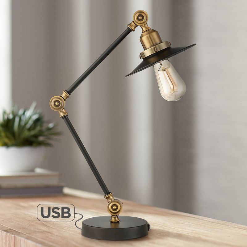 Inspired by vintage industrial designs, this decorative desk lamp adds some modern upgrades. From the 360 Lighting brand, it features a built-in USB port in the base so you can easily charge your smart phone or tablet as you work. It comes in a black finish metal frame, with gold finish accents for a touch of luxe. The adjustable head and arm joints can be moved up and down, allowing you to redirect lighting as you please.
