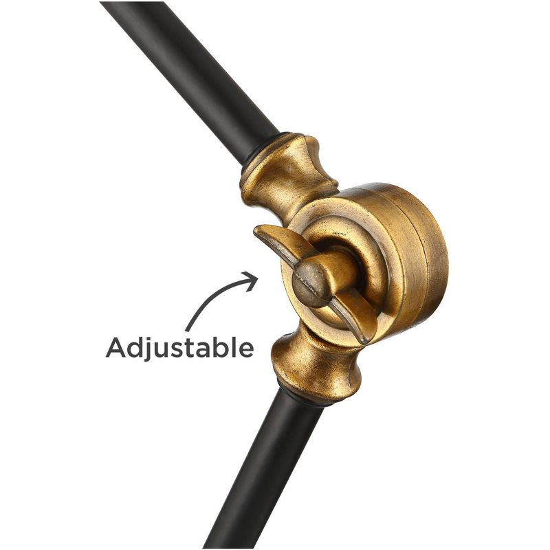 • Black finish with gold finish accents at the joints and lamp head. Metal construction. 8-foot long black cord.
