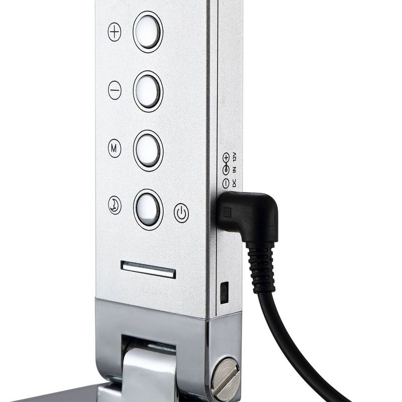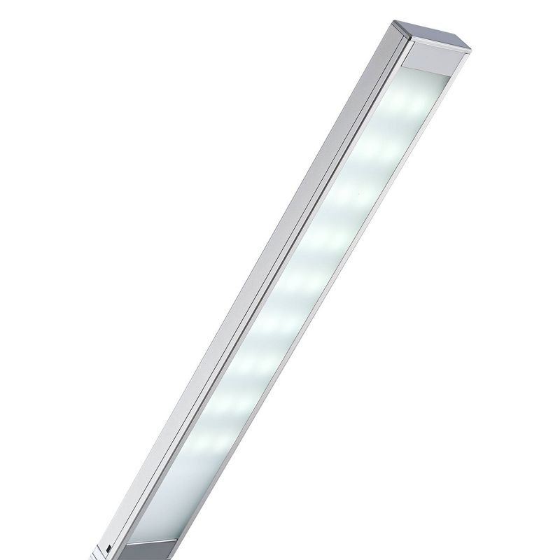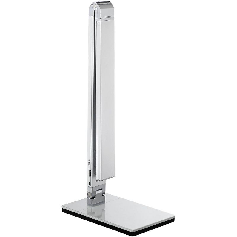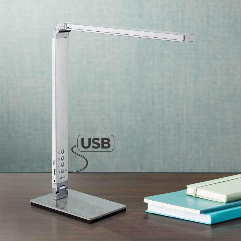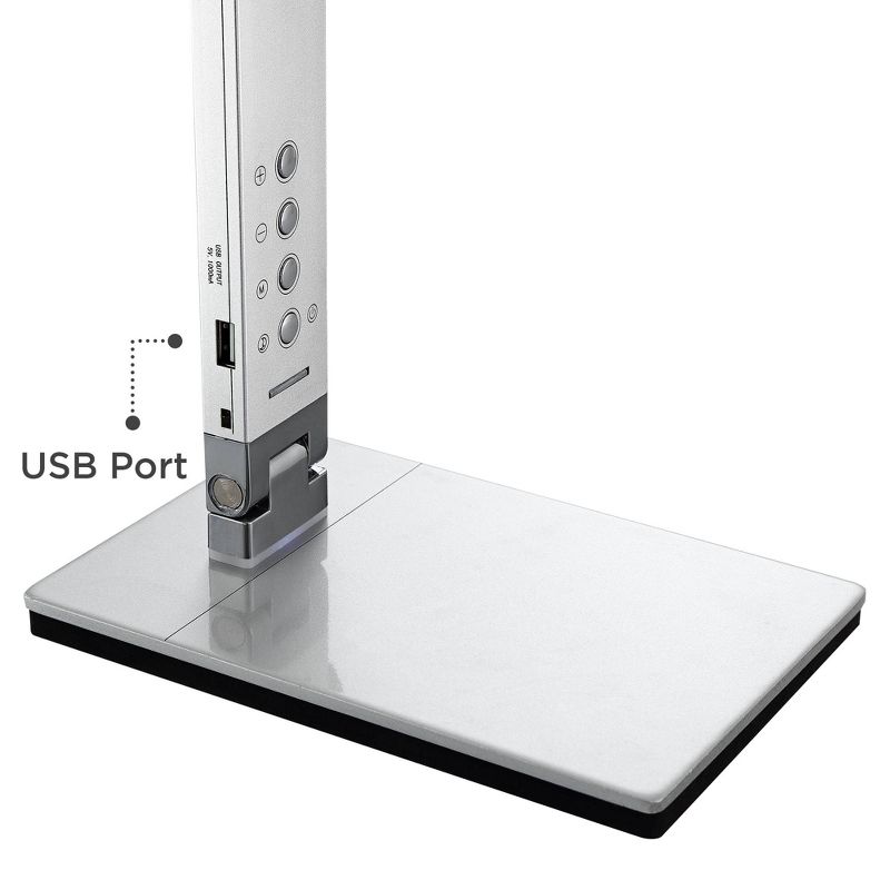 Upgrade your home office or work desk with this contemporary desk lamp. With metal construction and a sleek silver finish, this lamp also features a USB port and small night light. This lamp is also energy-efficient and adjustable, which makes it a great choice for your workspace.