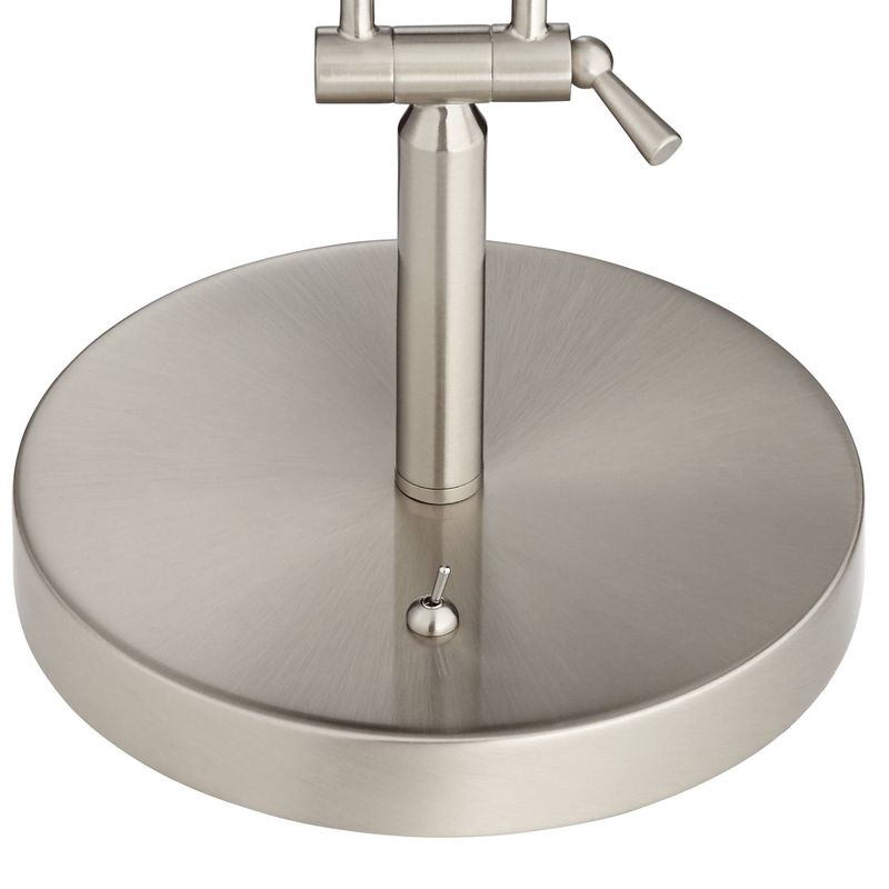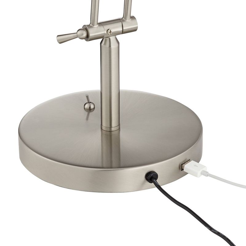 From 360 Lighting, this energy-efficient LED desk lamp is designed for task lighting purposes. It comes in a sleek metal frame made of thin rods and a round base and head, all dressed in a silvery satin nickel finish. A USB port is built into the base for charging smartphones and other devices. Adjust the height or change the direction of the lighting with the movable arm joints.