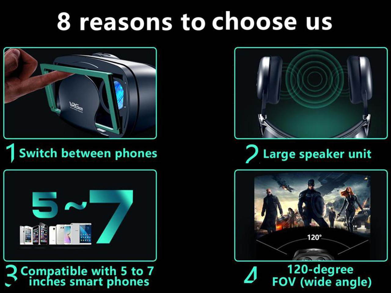 1. with A Large Headset: The VR glasses with a large headset provides a great experience. The sound quality is strong and stable, the large screen frame is detachable, both large and small screen phones are available (maximum support 7 inches screen phone).