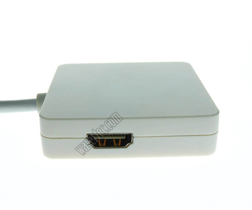 | Features | (1) One Mini Displayport cable with 3 different adapters. (2) Powered by Mini DisplayPort, no external power source is required. (3) For Apple Macbook manufactured after April 2010, the HDMI and Displayport output support audio and video synchronous transmission. (4) Support DisplayPort highest video resolution 1920*1200p. (5) Support HDMI/DVI highest video resolution 1920*1080p. (6) Support HDMI/DVI 225MHz/2.25Gbps per channel (6.75Gbps all channel) bandwidth (7) Support HDMI/DVI 12bit per channel (36bit all channel) deep color. (8) Automatic monitor plug and unplug detect for DVI / HDMI / Displayport output. (9) Down Spread Spectrum Clock (SSC) support. |
