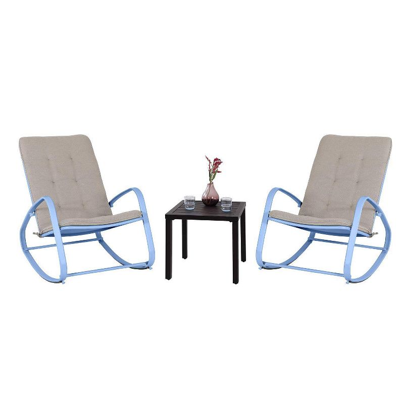 Buy 3pc Set with Patio Rocking Chairs & Metal Side Table - Blue - Captiva Designs in United States - Cartnear.com
