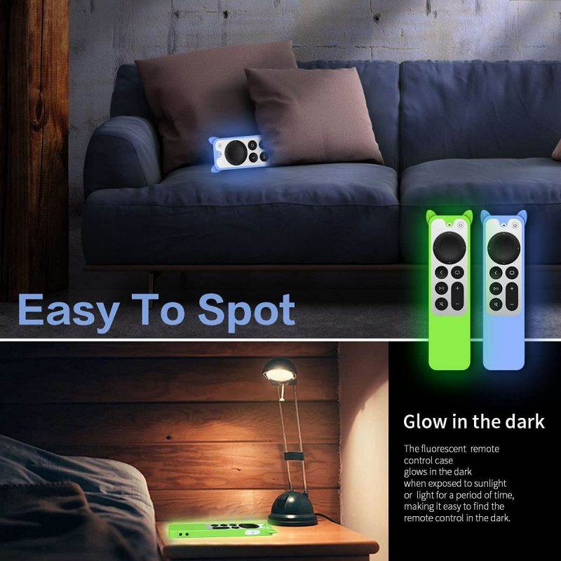 Are you still looking for something to protect and decorate your 2021 Apple TV Siri Remote (2nd Generation)?The WQNIDE remote cover with compact design can effectively protects your remote from slipping, cracking, scratching, gives the maximum of protection.?3Pack - Bright colors, easy to identify the remote control.?Full access to all buttons, ports and functions, charging ports can be directly accessed.?Safely cover the back end and edges of the remote control, providing maximum protection for your remote control to prevent it from cracking and scratching.?With hand strap and the back has anti-slip design, easy to grip, prevent the remote from slipping or getting lost.?The apple tv remote protection cover with a bright green / blue glow design, let you find it easily at night which is easier to find than ordinary color.Tips?Our remote protective cover just compatible with Apple TV Siri Remote (2nd Generation)(2021 Release)?Exposing it under lights for some time before using this glow case will make it glow brighter in the darkness.?The case only glow in the dark, please put it in the dark place to check.? Please check your TV remote model before purchase.If you can't sure, please contact us and we are glad to help you!Product Include:1x Silicone Remote Case Glow Blue1x Silicone Remote Case Glow Green1x Silicone Remote Case Purple (Note: