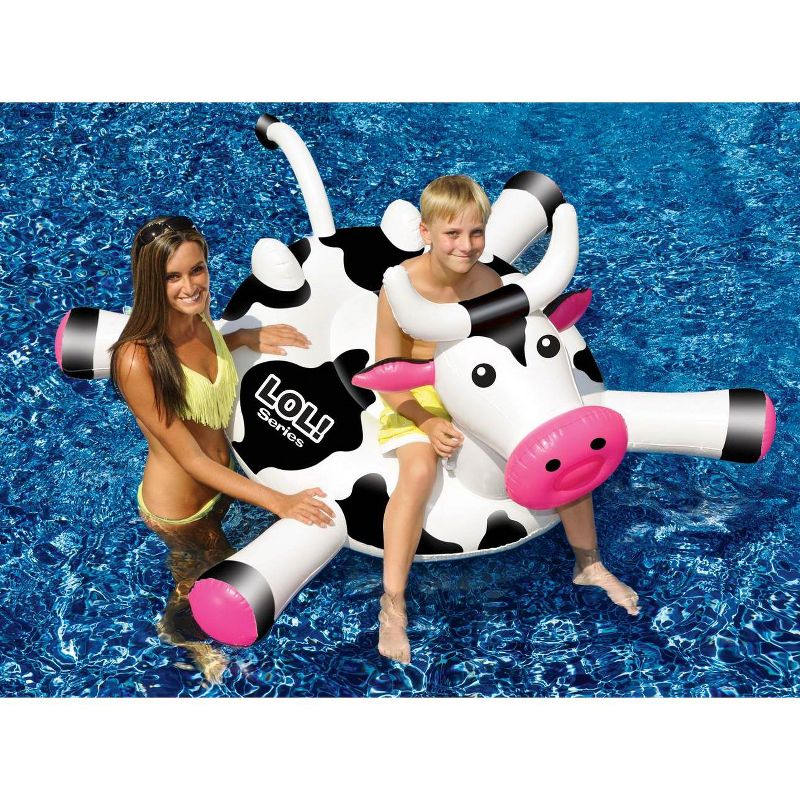 These inflatable cow (LOL!) pool toys by Swimline are constructed of heavy-duty vinyl and measures 54" in diameter and can handle 140 lbs each, making them a great addition to pool or lake fun.