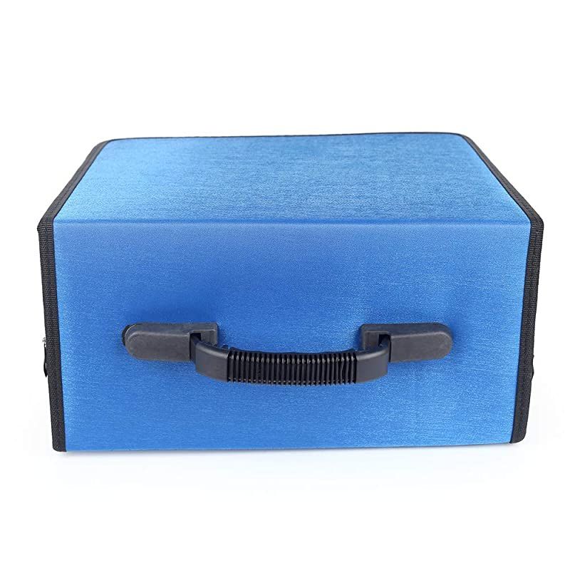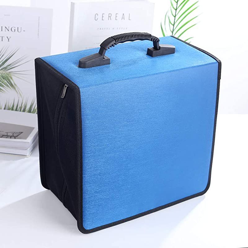 Color: Blue High Quality Lightweight Carrying CD/DVD Case WalletOur CD case does its job very well. Moisture and strong plastic +PP film + non-woven fabric case design is durable enough to store it anywhere without worrying about your CDs being crushed and scrached. It is compact and portable, around holding 350 CDs or DVDs with zippered closure without being super big and bulky. 1. CD CASE SIZE 12.4 x 6.3 x 11.4 inch (LxWxH) 2. Provides Maximum Protection from Dust, Scratches and other Disk Damage. 3. CD Organizer holds 350 CDs, The already pulled out tabs make it easy for you to slide your discs right into the pockets. 4. Transparent Sleeves for Improved Media Organization. 5.