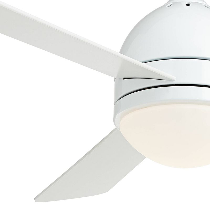 • White finish motor. Three white finish blades. Opal frosted glass.