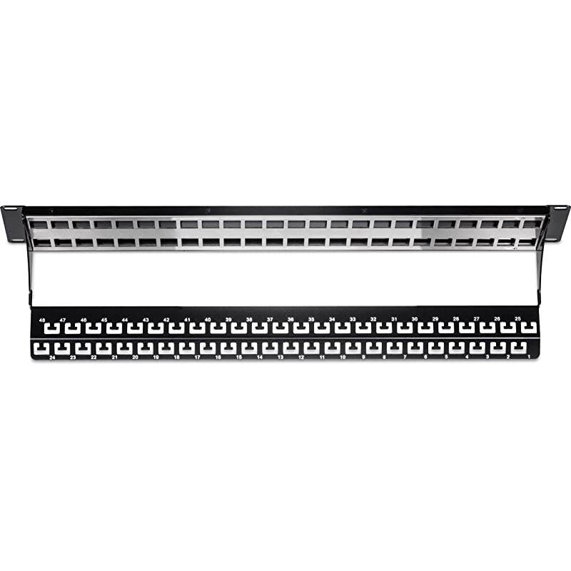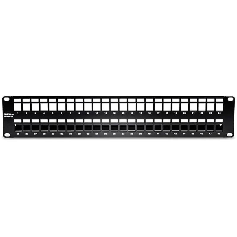 s 48-Port Blank Keystone Shielded 2U Patch Panel, model TC-KP48S, is designed for use with s Cat6A shielded keystone jacks (TC-K06C6A). When used together, they create a keystone shielded patch panel solution suitable for gigabit and 10G Copper Ethernet network applications. Materials SPCC steel construction, ABS plastics. Use this keystone shielded patch panel with Cat6A shielded cabling, which is specically designed to eliminate EMI and crosstalk ensuring peak performance and data integrity. 2 year PACKAGE CONTENTS TC-KP48S Quick Installation Guide.