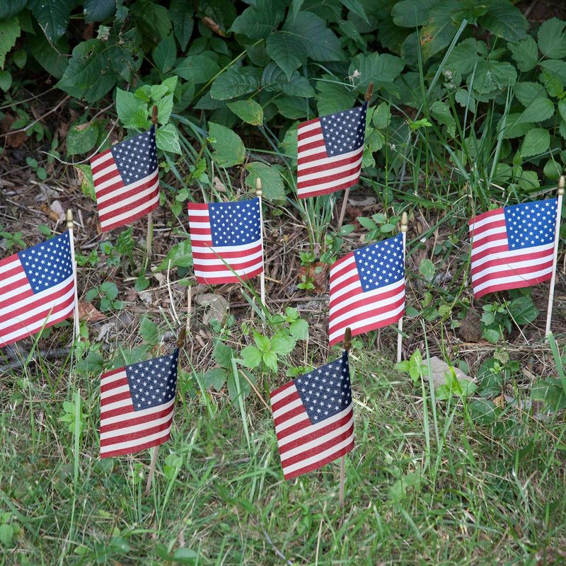 This 8-pack of 4 X 6 in. handheld U.S. stick flags are made of woven poly-cotton (70% polyester and 30% cotton). Our Sentinel poly-cotton fabric is designed to be fade resistant and durable yet very light weight. Stick flags are intended for decoration within planters, in your home, or for display at patriotic events. Betsy Flags by Valley Forge is proud to make FMAA certified flags. U.S. law requires every American flag to be labeled with its country of origin. Look for the “Certified Made in U.S.A.” label, which verifies that your flag has been made in the United States with materials that are domestic in origin and that all processes in every step of its manufacturing were completed in U.S. facilities with U.S. labor. Valley Forge stands behind its promise to ensure domestically made products. This eight-pack of handheld American stick flags each measure four inches by six inches. The poly-cotton flags are attached to a wood staff and feature a gold gilded tip.
