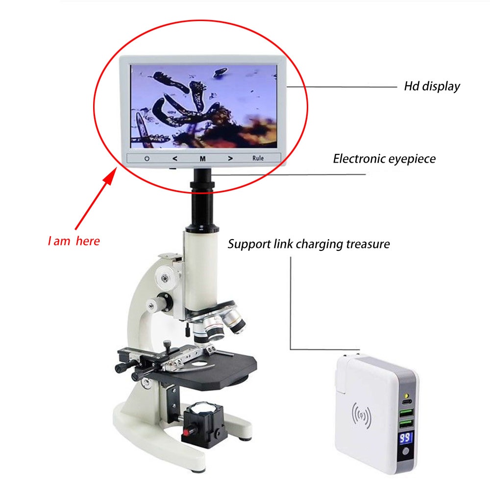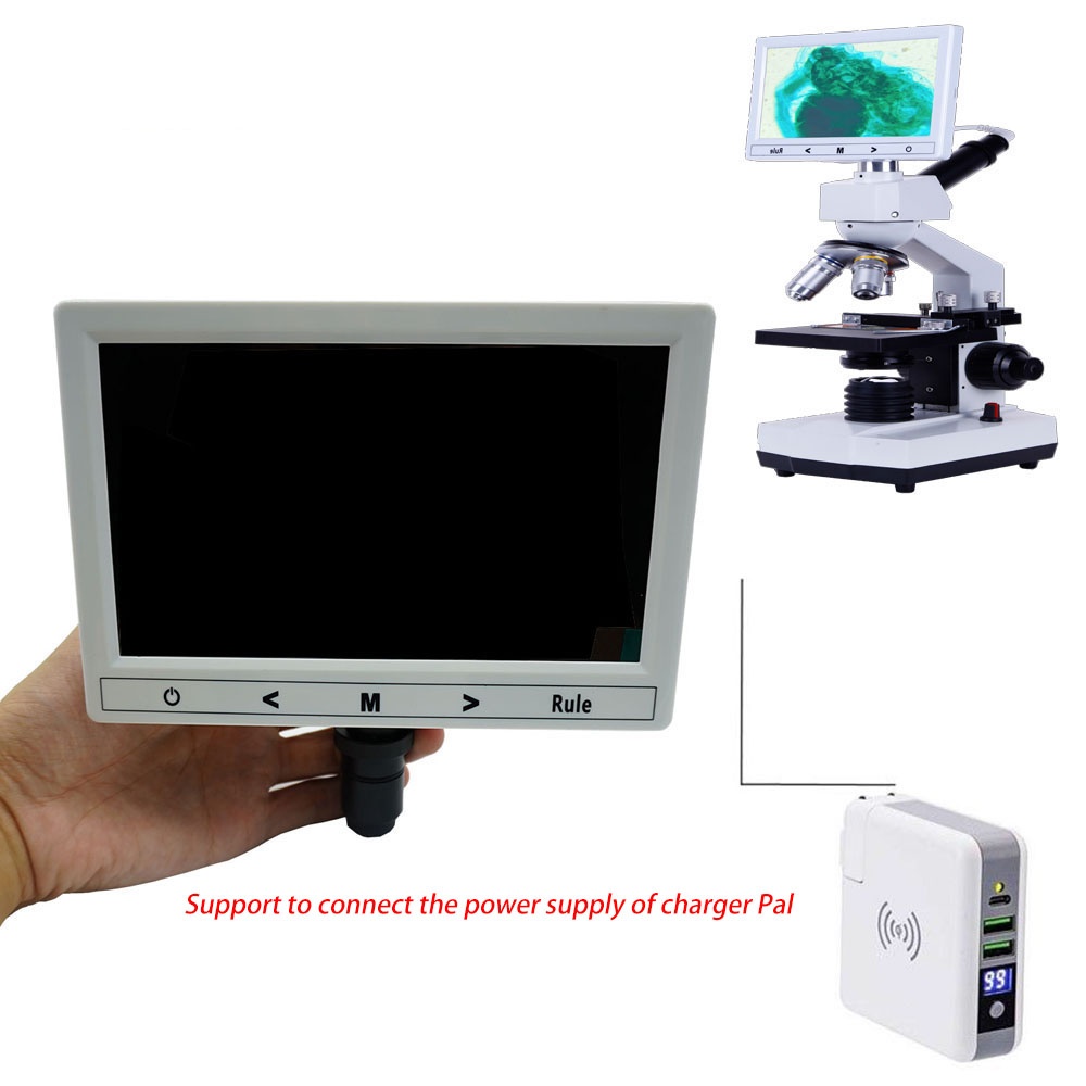 This is a very practical microscope monitor with eyepieces, Support button touch (only for 7 and 9 inches), not only can be powered by USB, but also can be powered by an external mobile power supply, so as to solve the problem of no power outlet when used outdoors.