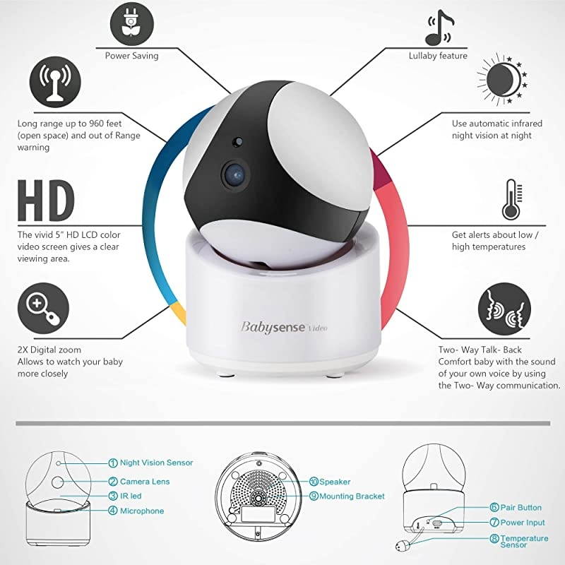 & COMFORT YOUR BABY: Use the two-way audio or the programmed lullaby sounds to calm your baby remotely. Watch your kid in the nursery 24/7, thanks to the IR night vision of this high-end portable baby cam monitor. *****NEVER