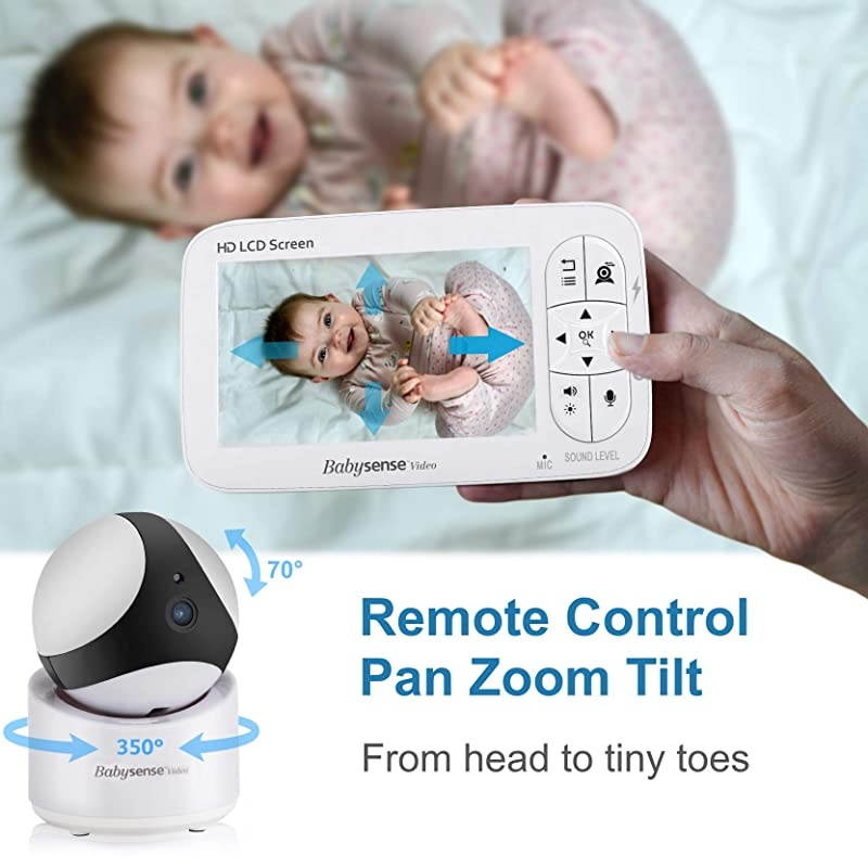 VIEW YOUR LITTLE ANGEL: The 720 HD image on the large 5" LCD display provides crystal clear viewing. Enjoy exquisite remote control convenience with pan (350), tilt (70) and double-zoom, at a 960ft range.