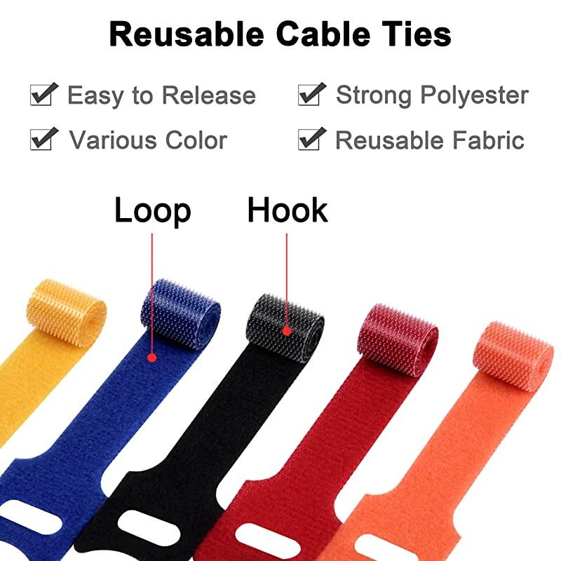 **********Self-gripping tie straps are great for power cords, audio cables, coaxial cable, telephone lines, electrical wires, etc. Organize your cables and cords - no more tangled messes! *****Sort out power cords for; laptops, PCs, audio/TV equipment, video game systems, charger cords for phones/tablets, etc. *****Made of durable fabric material! Add, remove, or adjust your cables and cords whenever you need to - The eye hole in the tail allows you to achieve a more secure wrap. *****These reusable ties are multi-purpose & practical - use them in a variety of ways in the home, office, garage, etc.