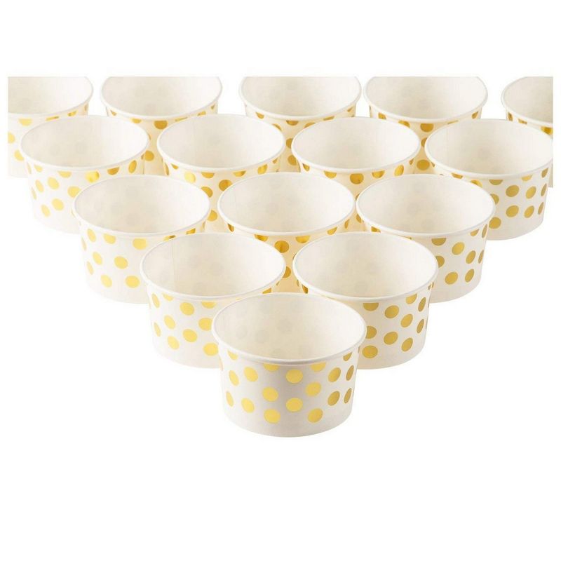 50-Count Paper Ice Cream Cups Yogurt Dessert Gold Polka Dot Party Bowls 8-Oz