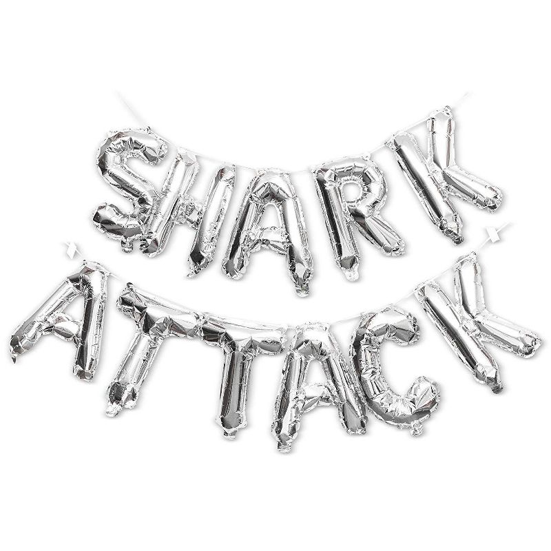 • WHAT’S INCLUDED: Set includes 3 large shark balloons; SHARK ATTACK foil balloon letters; 36 latex balloons, 3 colors: white, light blue and dark blue; 50 total balloons