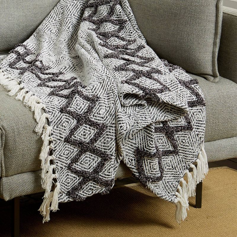 Global inspired natural hand crafted throw. Lovingly designed and created just for your home. Lend vintage flair to your indoor space with this throw blanket from Patina Vie. Crafted with a soft and breathable cotton and polyester exterior, this throw blanket offers a beautiful accent to any room year-round. Place on your favorite sofa or as an accent piece on your bed as a stylish design accent. Please do not machine wash or dry this pillow. Spot clean only