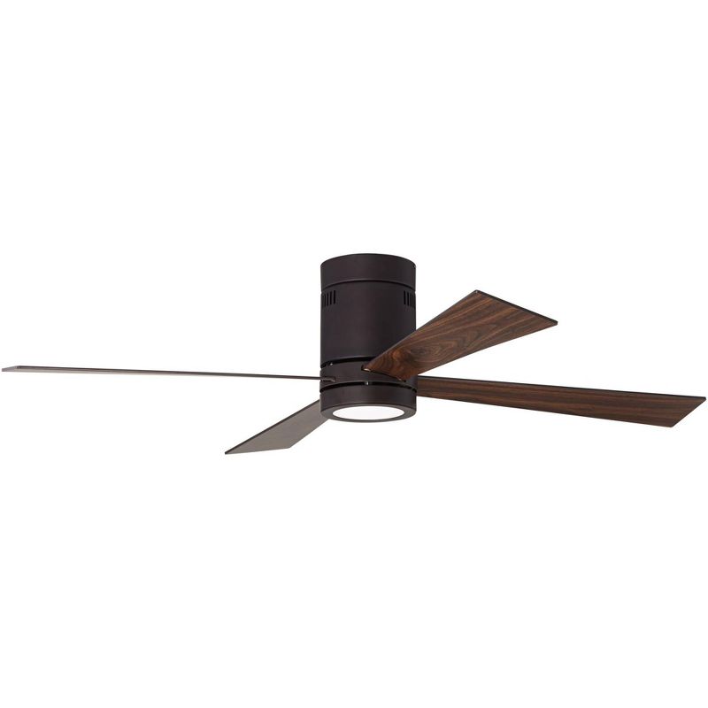 Clean, cohesive lines give this ceiling fan contemporary appeal and style. Four walnut finish blades are paired with an oil-rubbed bronze finish motor, creating a look of bold contrast. An opal glass light with an LED offers energy efficient illumination.