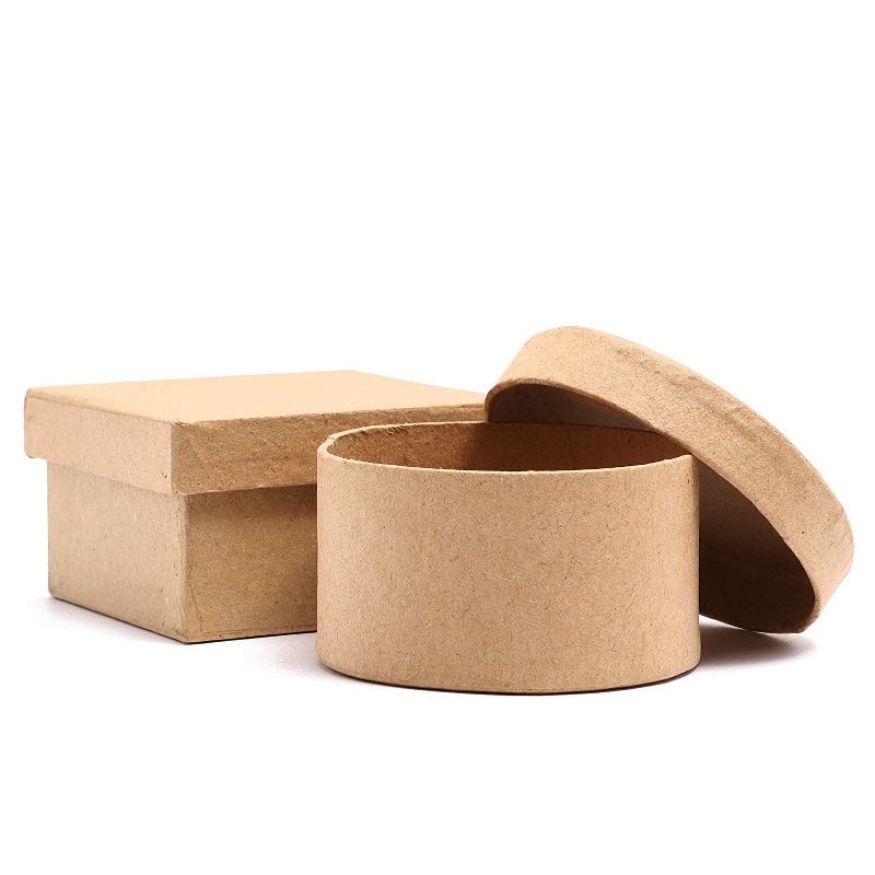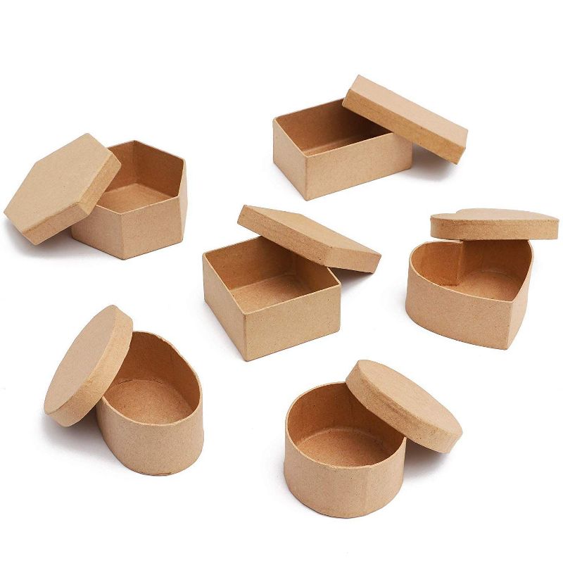 Mini Paper Mache Boxes with Lids (6 Shapes, Kraft Color, 6 Pack)