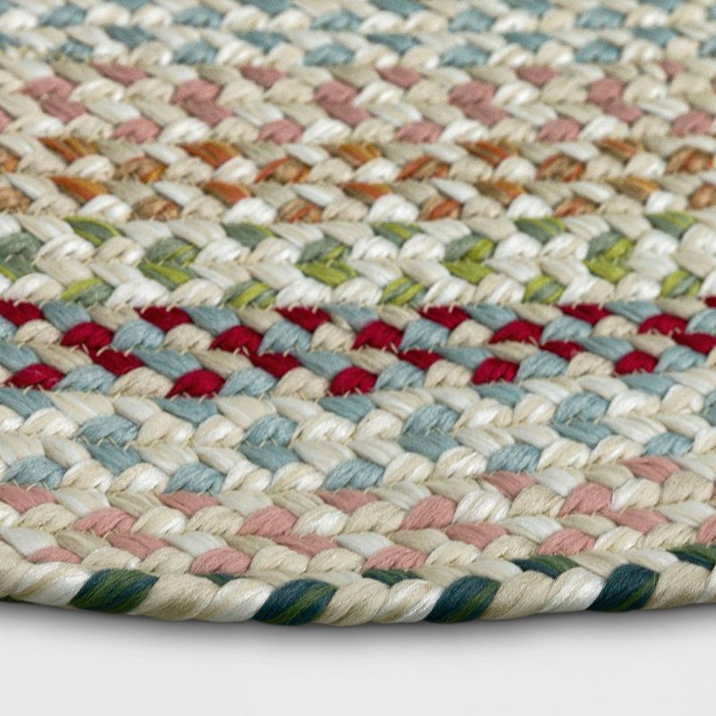 Anchor your outdoor decor with the appealing style of the Six-Foot Round Braided Outdoor Rug from Opalhouseâ„¢. Featuring a woven striped pattern in shades of red, pink, yellow, green and blue, this colorful outdoor rug makes it easy to create a lively vibe in any outdoor space, and the six-foot diameter makes for a substantial amount of coverage. Plus, durable construction makes it simple to spray off with a garden hose or spot clean with a damp cloth for easy maintenance.