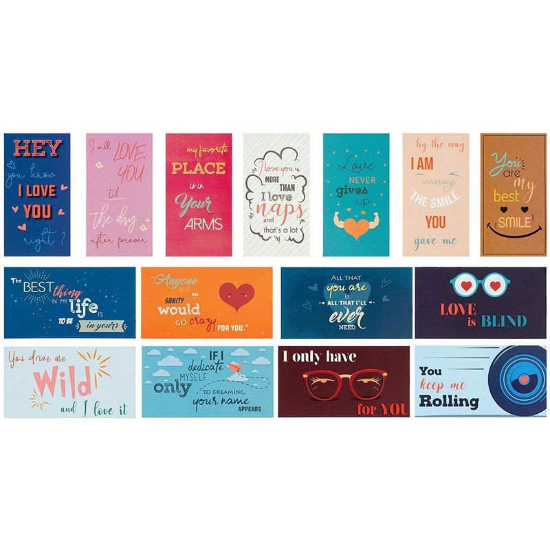 Paper Junkie 60-Pack Romantic Inspirational Lunch Box Love Notes for Husband, Wife, Adults, 60 Card Designs, 2 x 3.5 Inches
