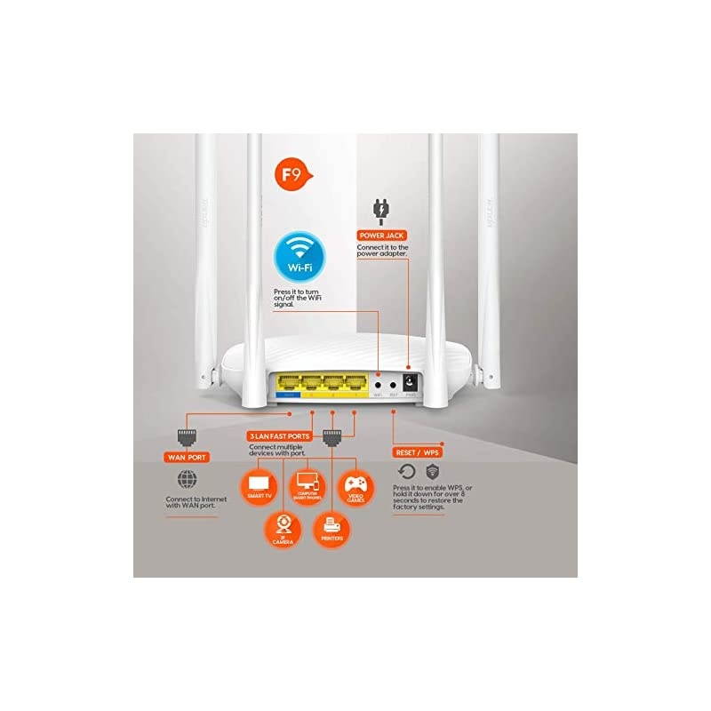 Color: AC600 F9 is 600Mbps high speed and Whole-Home coverage Wi-Fi router, 4*6dbi high-gain omnidirectional antennas, incredible Wi-Fi coverage and reliability, beamforming+ enhances the Wi-Fi range and stability. F9 Support smartphone app remote management, you can manage your device at anytime and anywhere. You will be reminded when unidentified devices connect to the network. You can add Unknown user to blacklist through the phone app with one touch. black and White List, remove all the unknown device from your network with only one key; power adjustment, save power and enjoy heathy