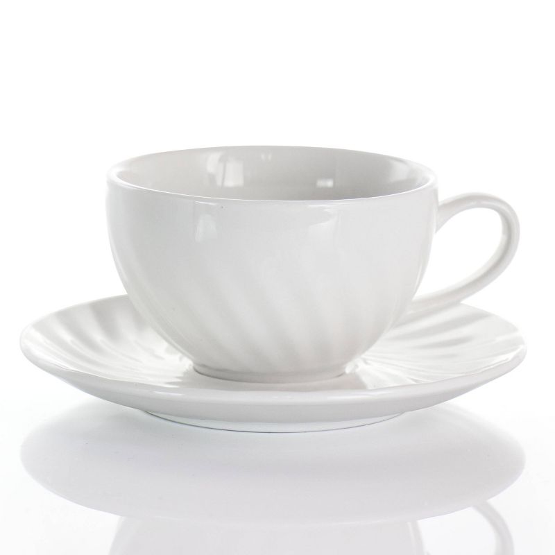 Add a touch of elegance to your morning coffee or afternoon tea gatherings with the Elama Clancy 12 Piece Porcelain Cup and Saucer Set in White. This set include six cups with six matching saucers for a complete setting for six. Each piece is crafted from beautiful porcelain; making this collection both microwave and dishwasher safe.