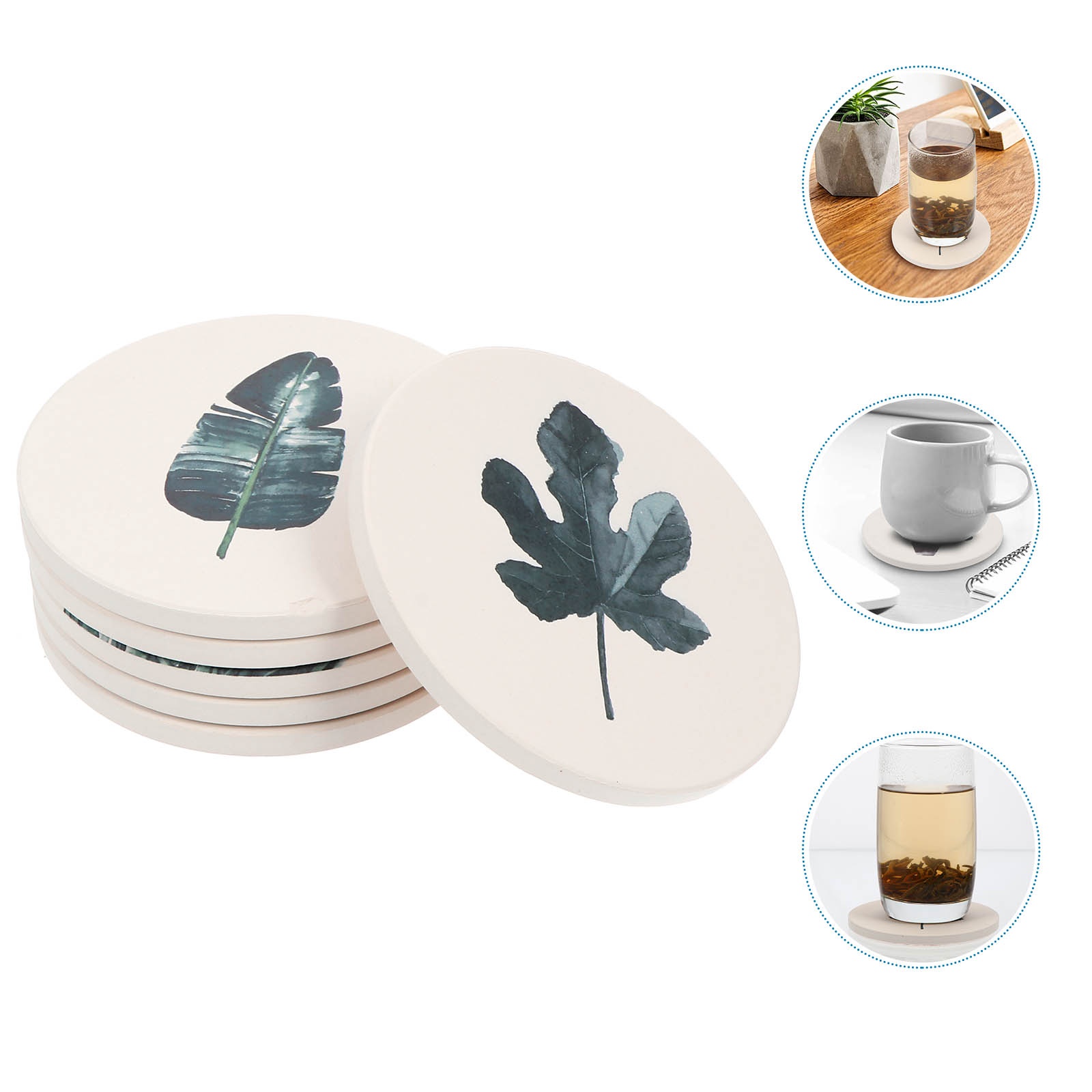 - Made of absorbent and insulated ceramic. It can absorb condensation or spills more quickly than leather and felt coaster. Protect tabletop and counters from hot or cold water dropping.