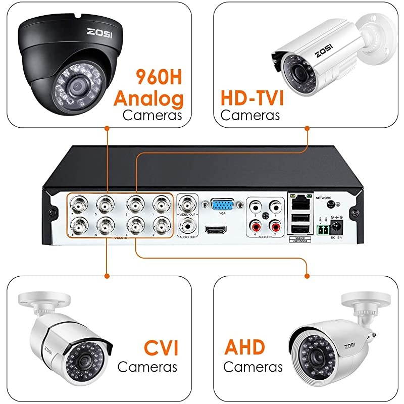 ***** **********Best Quality Guranteed. *****This Certified Refurbished product is tested and certified to look and work like new. The refurbishing process includes functionality testing, basic cleaning, inspection, and repackaging. The product ships with all relevant accessories, a minimum 90-day warranty, and may arrive in a generic box. Only select sellers who maintain a high-performance bar may offer Certified Refurbished products on. *****Hybrid Capability 4-in-1 8 Channel DVR Recorder, with self-adaptive technology, it supports 4 kinds of camera models: 960H Analog, 720P/1080P AHD, 720P/1080P TVI and CVI. (1TB Security Grade Hard Drive was pre-installed side the DVR). *****Easy to get live streaming or playback videos via free App (Smart or View) on iOS & Android devices, through free Client software on Windows or Mac, or via major browsers like Internet Explorer and Firefox.