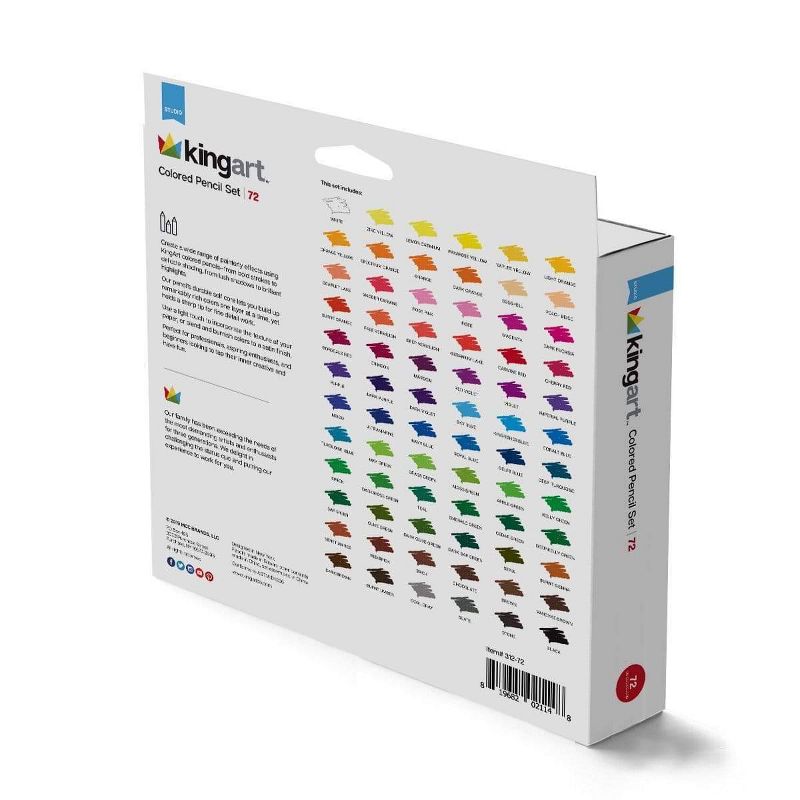 Create a wide range of painterly effects using Kingart colored pencils, from bold strokes to delicate shading, and from lush shadows to brilliant highlights. The pencils' durable soft core lets you build up remarkably rich colors one layer at a time, yet holds a sharp tip for detail work.