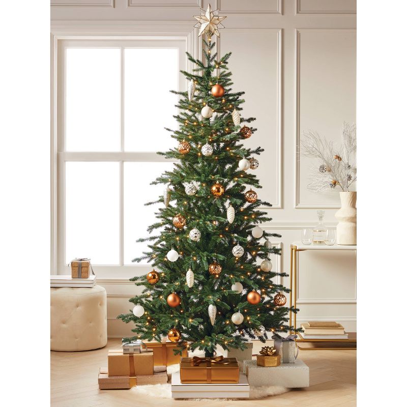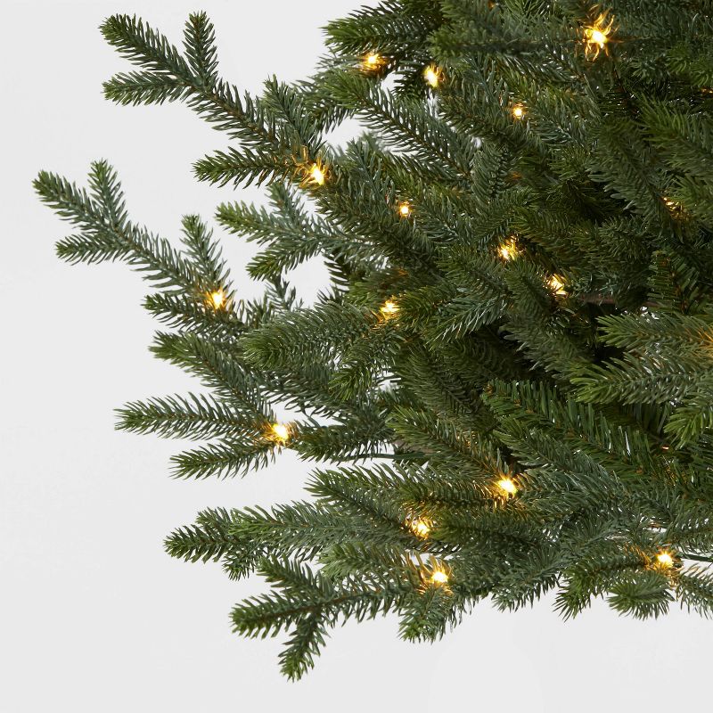 The 7-Foot Pre-Lit Balsam Fir Artificial Tree with AutoConnectâ„¢ LED Warm-White Lights from Wondershopâ„¢ is a wonderful way to dress up your home for the season. This artificial fir tree has a realistic look complete with deep-green boughs for a truly classic feel. Tall and bushy, the tree reaches 7 feet to fit well with most standard ceiling heights, while a diameter of 4 feet gives it a moderate footprint that still has good presence. Complete with 400 warm-white LED lights, this pre-lit Christmas tree with AutoConnectâ„¢ makes it easy to light your tree without searching through the branches for plugs, taking one more step out of the process so you can get festive faster.