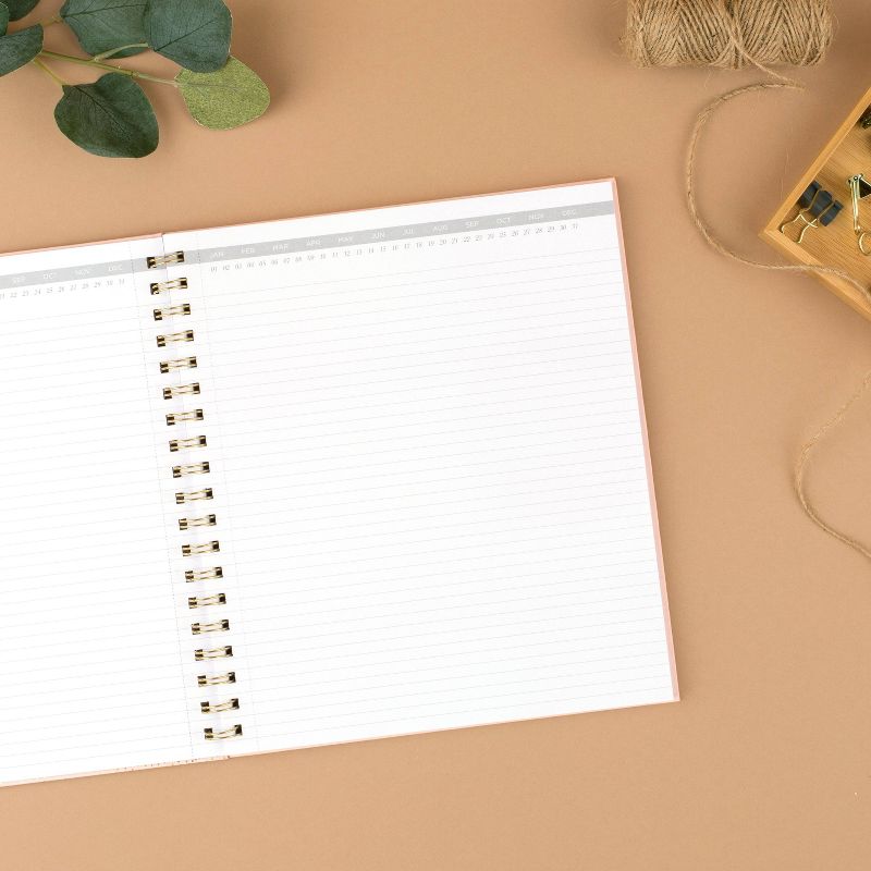 This Cambridge WorkStyle Notebook has a hardcover with an ultra-smooth, velvety feel. You’ll be able to tackle all your notetaking needs with this one notebook that comes in a trendy color. Includes 80 double-sided sheets for a total of 160 notetaking pages. Each sheet lists 12 months and 31 days across the top so you can keep track of your notes by date, but the year Is not listed for anytime use. Lined pages keep handwriting neatly aligned and easy to read, and perforations make it easy for them to be torn out. Notebook has gold twin wire binding.