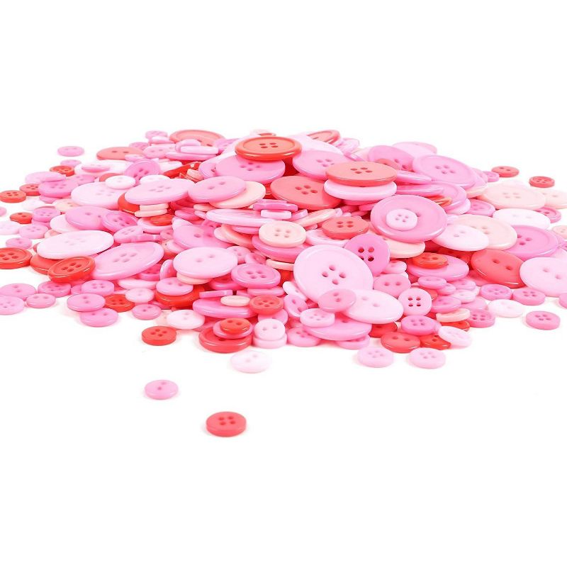 COLORED BUTTONS: Use these pink and red buttons to customize or repair your garments, handbags, hats, scarves, and other clothing, fabrics, and crafts
