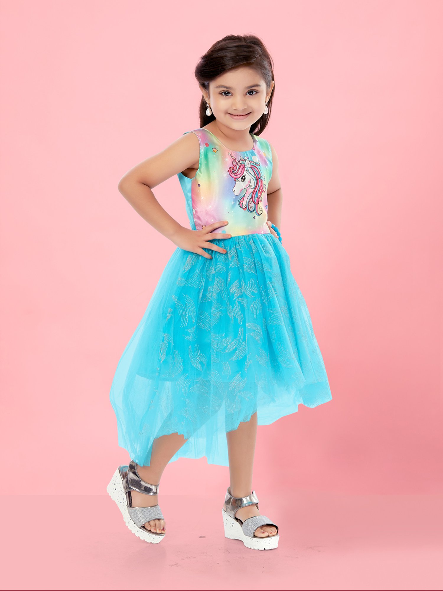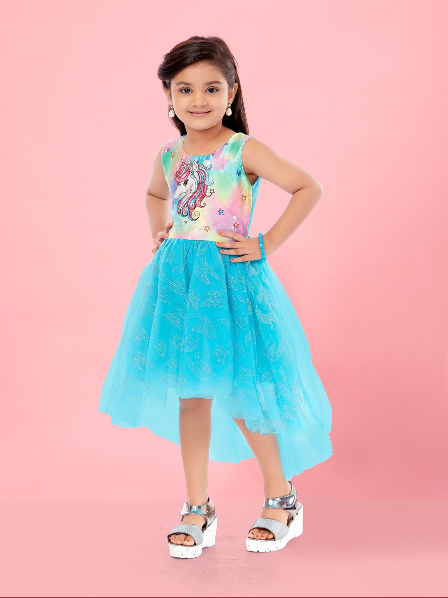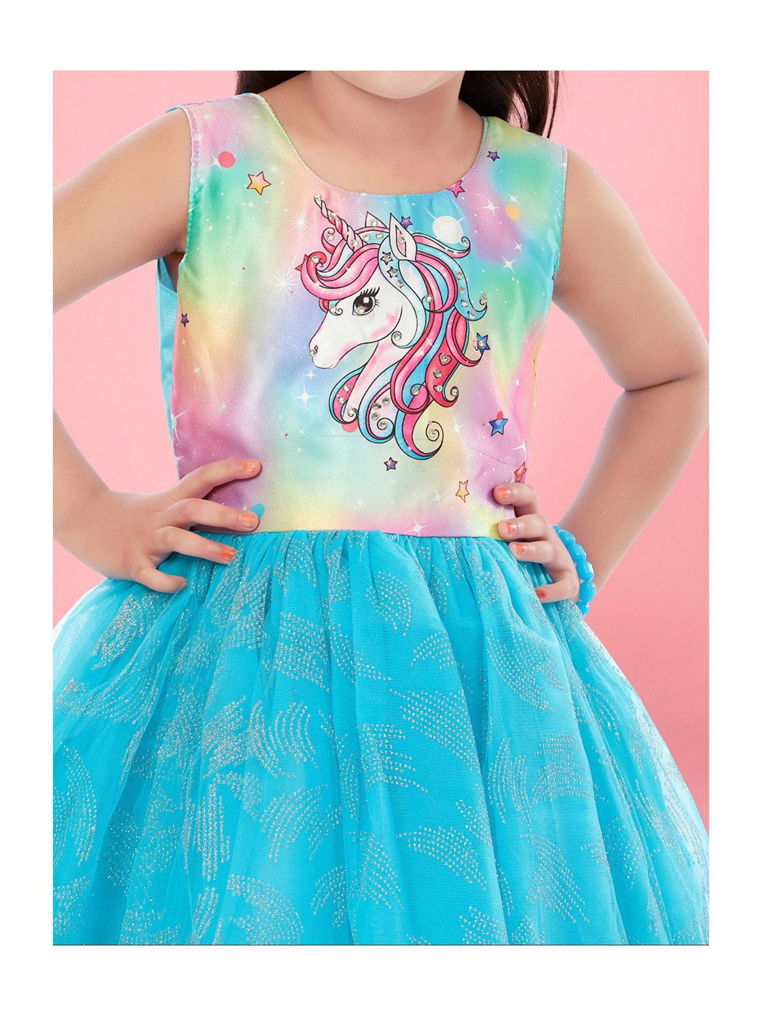 Add this chic turquoise frock with unstiched sleevess from Aarika Kids to your little one's collection to elevate her unique style. Beautifully crafted from nylon fabric with a embellished pattern, this round neck with sleevesless frock with unstiched sleevess is attractive and comfortable. Team this frock with unstiched sleevess with a pair of sandals.