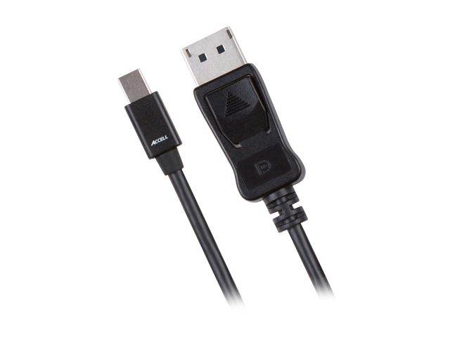 This DisplayPort cable supports PC resolutions of up to 3840x2160, stereoscopic 3D graphics and all HDTV resolutions including 1080p and 4Kx2K. The cable also supports daisy chaining of multiple monitors. The UltraAV DisplayPort cable transmits uncompressed audio, extended color depths and features a throughput of up to 5.4 Gbps per lane, for a maximum total throughput of up to 21.6 Gbps, twice the throughput of DisplayPort 1.1 a. The Accell Mini DisplayPort to DisplayPort 1.2 cables are HBR2 rated and certified by DisplayPort (VESA) to be fully DisplayPort compliant. Fully DisplayPort Version 1.2 Compliant DisplayPort 1.2 compatible - supports version 1.1 a Computer resolutions up to 3840x2160 and 3D video Supports all HDTV resolutions including 1080p and 4K Latching connectors for a secure, reliable connection Up to 5.4 Gbps per lane throughput - 21.6 Gbps total