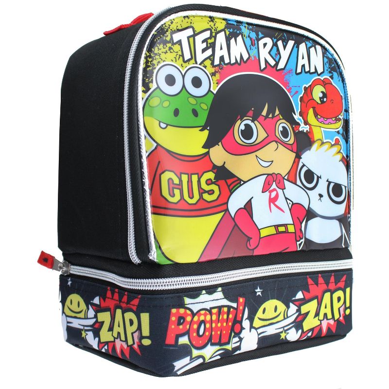 • TEAM RYAN: Capture Ryan and his friends with this dual-compartment lunch tote!