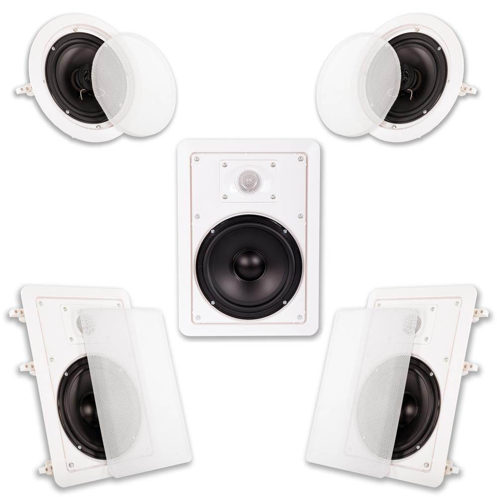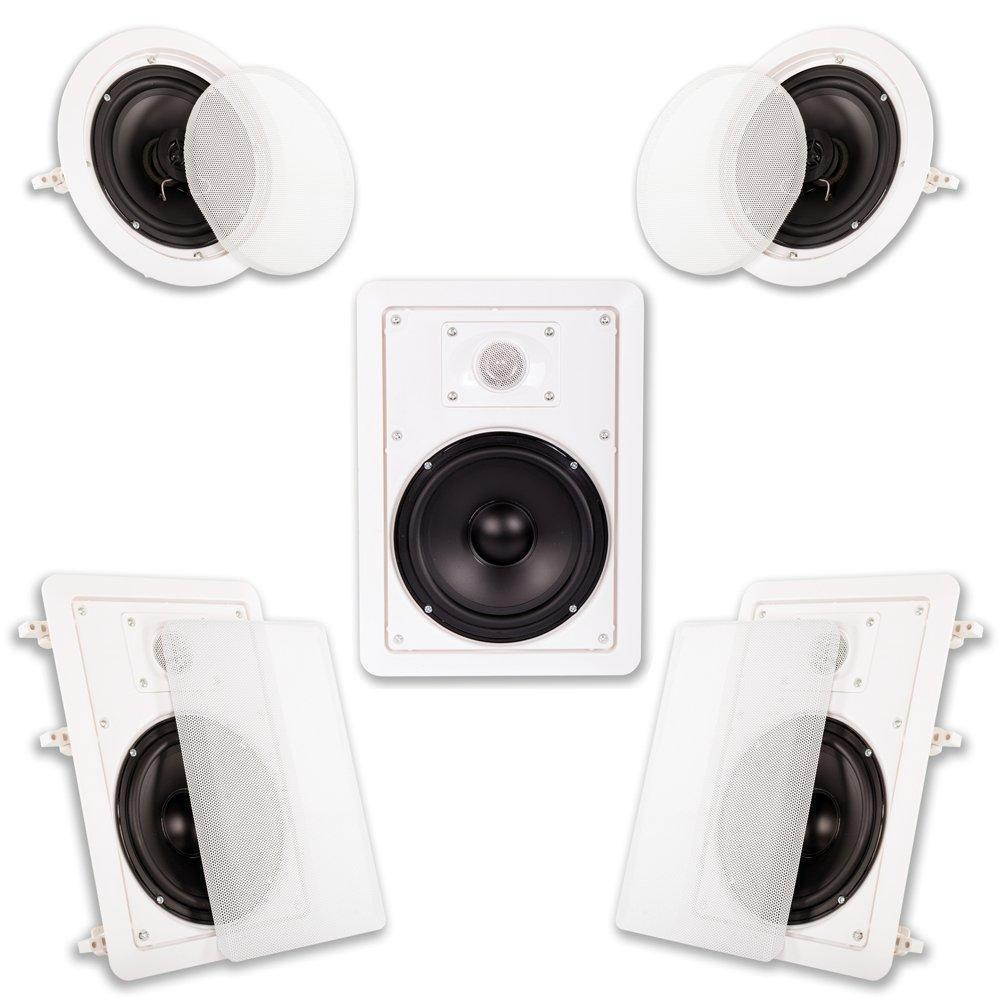 1250 Watt 6.5” In-Wall/Ceiling 5-Piece Multi-Speaker System|1250 Watts Peak Power Handling (Total) / 250 Watts Peak Power Handling (Each)|2-Way Design and Functionality|Butyl Rubber Surround|High Rigidity Polypropylene Cone with Extended Throw Drive Assembly |