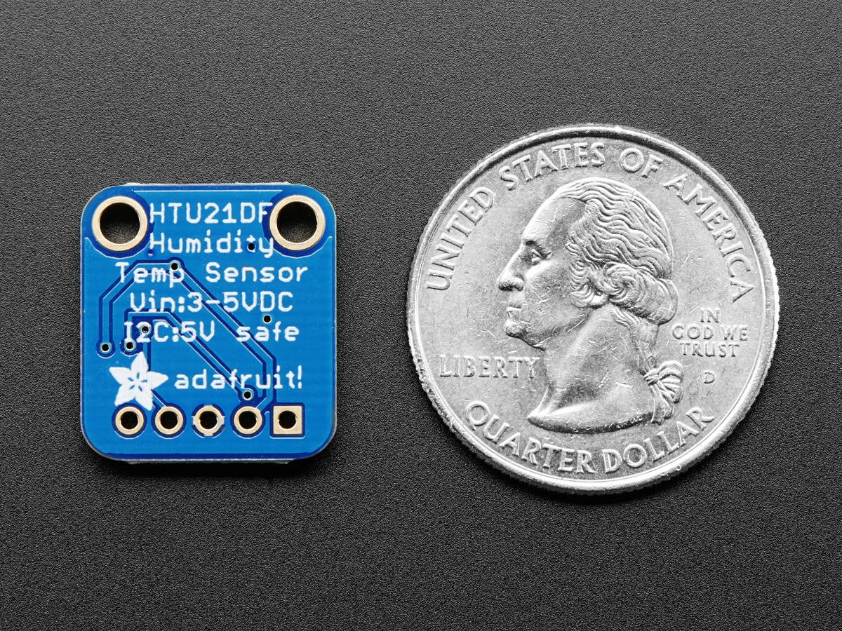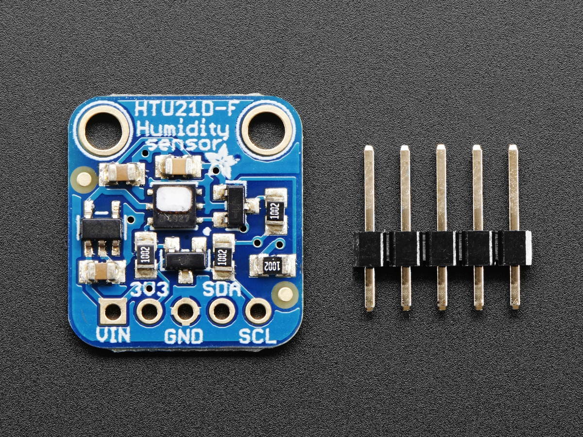 Key Features: Accurate and intelligent alternative to the much simpler Humidity and Temperature Sensor - SHT15 Breakout I2C digital humidity sensor Breakout board that includes the Filtered version (to keep the sensor clean), a 3.3V regulator and I2C level shifting circuitry Fully assembled and tested - some basic soldering required It' s summer and you' re sweating and your hair' s all frizzy and all you really want to know is why the weatherman said this morning that today' s relative humidity would max out at a perfectly reasonable 52% when it feels more like 77%. Enter the HTU21D-F Temperature + Humidity Sensor - the best way to prove the weatherman wrong! This I2C digital humidity sensor is an accurate and intelligent alternative to the much simpler Humidity and Temperature Sensor - SHT15 Breakout. It has a typical accuracy of ± 2% with an operating range that' s optimized from 5% to 95% RH. Operation outside this range is still possible - just the accuracy might drop a bit. The temperature output has an accuracy of ± 1degC from -30~90degC. Such a lovely chip - so Adafruit came up with a breakout board that includes the Filtered version (the white bit of plastic which is a PTFE filter to keep the sensor clean), a 3.3V regulator and I2C level shifting circuitry.
