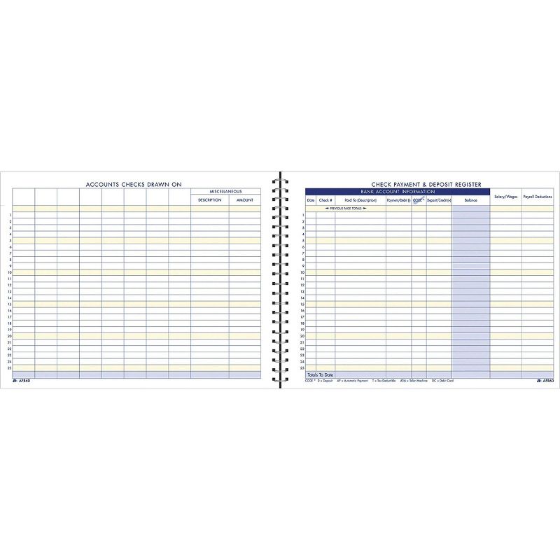 Record payments and deposits in this nondated register book to accurately track and summarize spending for all business expenses. Check Payment and Deposit Register is designed with everyone from the corporate business traveler to the small business/home business owner in mind. Wire-o spiral allows book to lie flat so rows line up across the pages. Ready-to-use forms make accurate record-keeping easy with blue and yellow printing to reduce eyestrain. Book includes a summary page in back and a bank reconciliation worksheet. Water-resistant, polypropylene cover protects interior pages from accidents . Sold as 1 Each.
