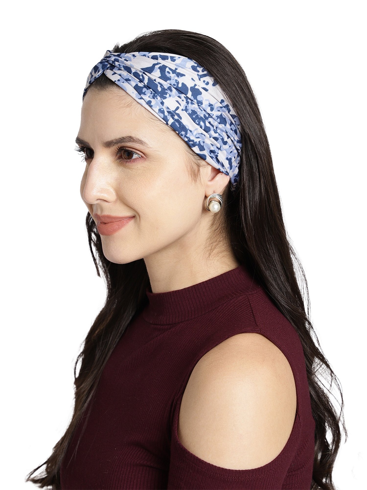 Combo pack of matching printed headband and scrunchy from Aditi Wasan features a knoted design and attached ribbed elastic strap on the back for ease of wearing. Made of high-grade viscose fabric, it ensures soft feel and touch. It features a off white hue which will enhance your look in a stylish way.