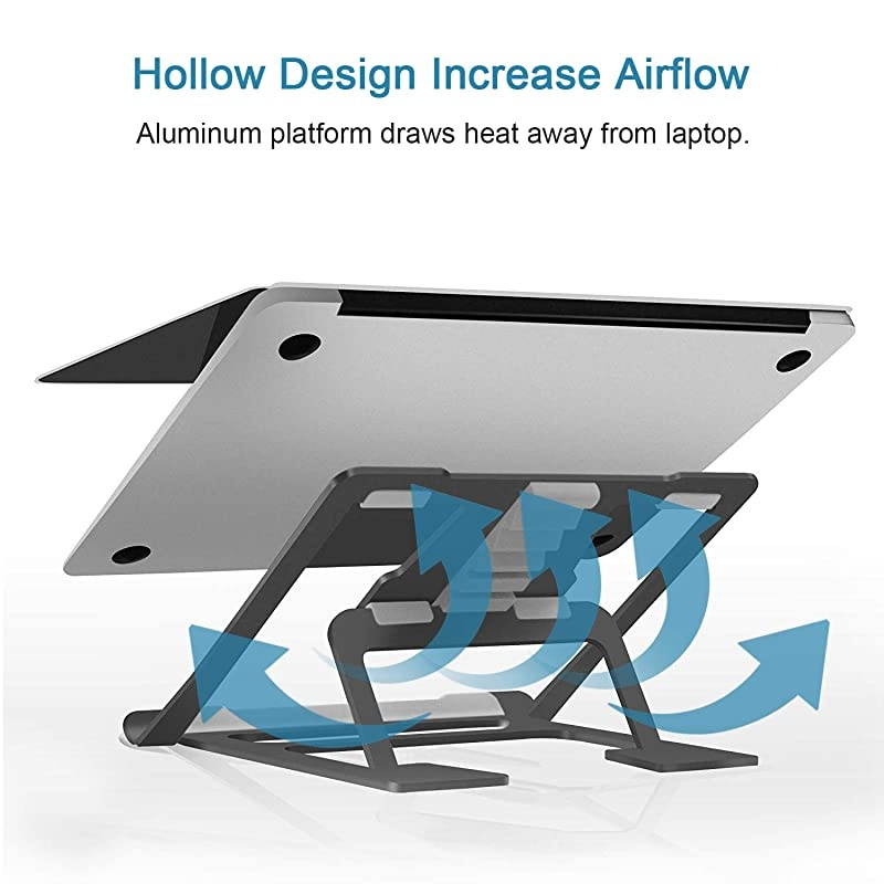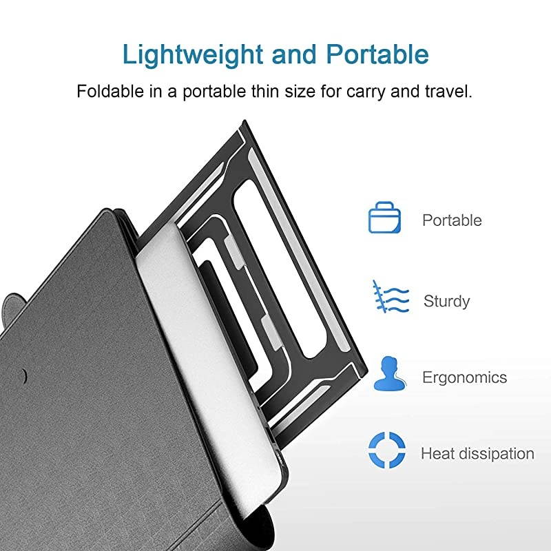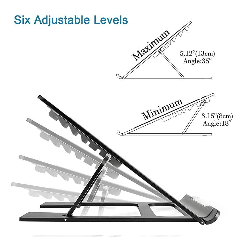 Color: BlackThe Loptop Stand is designed to be ventilated to prevent your equipment from overheating, and the surface of the bracket is covered with a non-slip sticker to prevent the device from slipping. Made of aluminum alloy environmentally friendly materials, Loptop Stand is small, lightweight, easy to carry and foldable for any occasion. Loptop Stand is suitable for different devices, such as laptops of different sizes and tablets. Designed to be ergonomic, the Loptop Stand adjusts height and reduces stress on the shoulders and waist of the body. effectively protecting your spine, preventing vision loss and eliminating hand fatigue. Specifications 1.