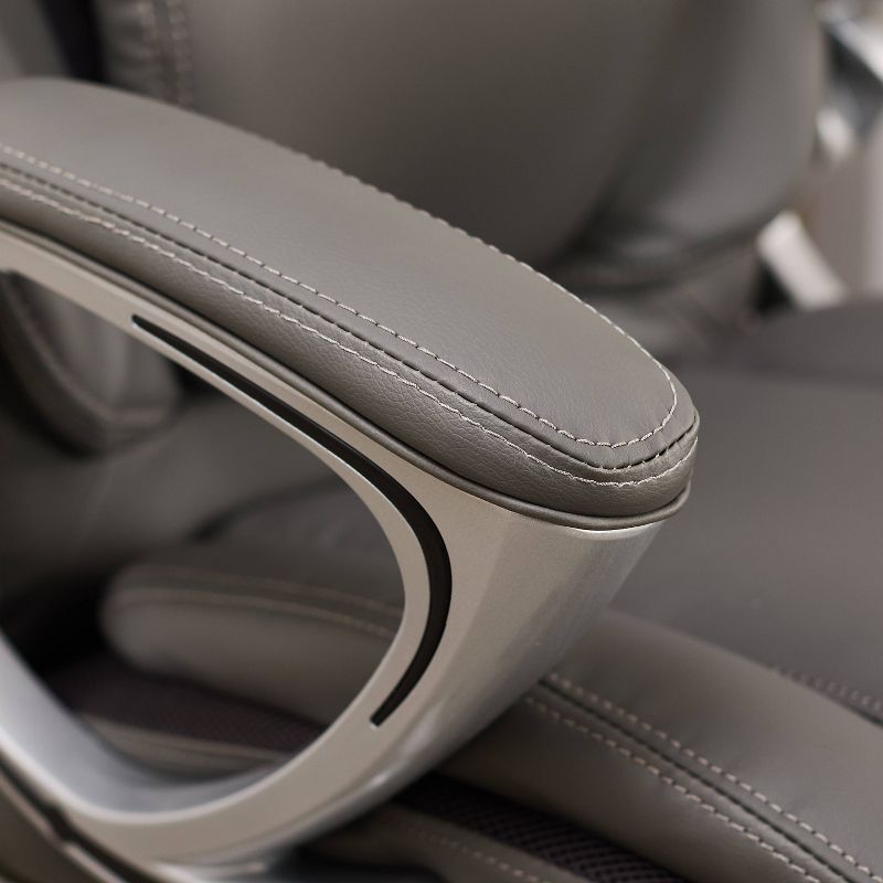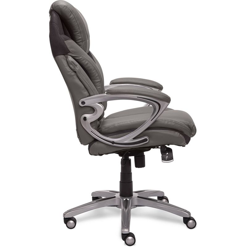 Designed for those that sit for long periods of time, the Serta Works Executive Office Chair with AIR Technology is rich with ergonomic enhancements to maximize comfort and wellness, so you can be more productive. Its lumbar with kinetic AIR Technology swivels and moves with you for dynamic support that actually helps improve your posture. Its sloping, waterfall seat cushion promotes circulation to decrease uncomfortable leg fatigue, and the pneumatic height and tilt adjustments can be customized with the right fit for you. But this chair is no slouch. Available in gray, cream and black and gray bonded leather, its sleek design gives any workstation the executive treatment.