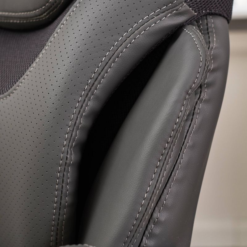 •Soft bonded leather upholstery in contemporary colors delivers professional style