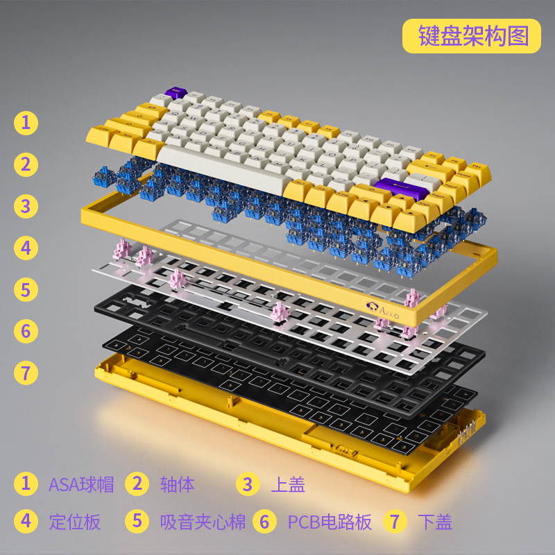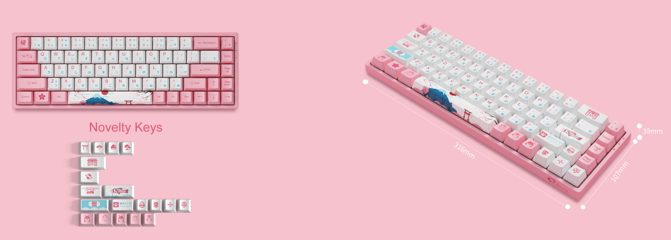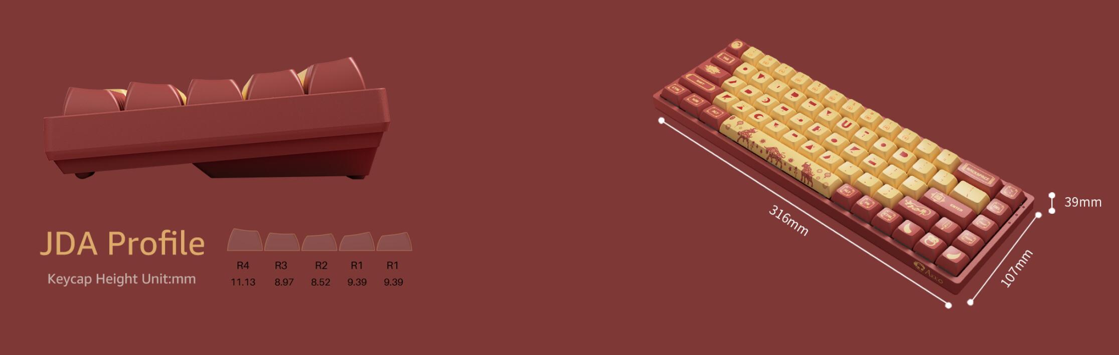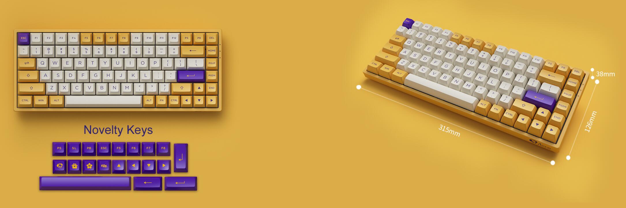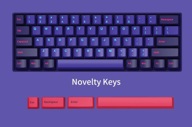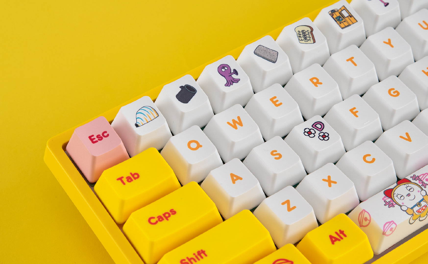 6.Keycaps are made of 85% PBT material, and the printing is processed with dye-sub technology, color bright and not easy to fade