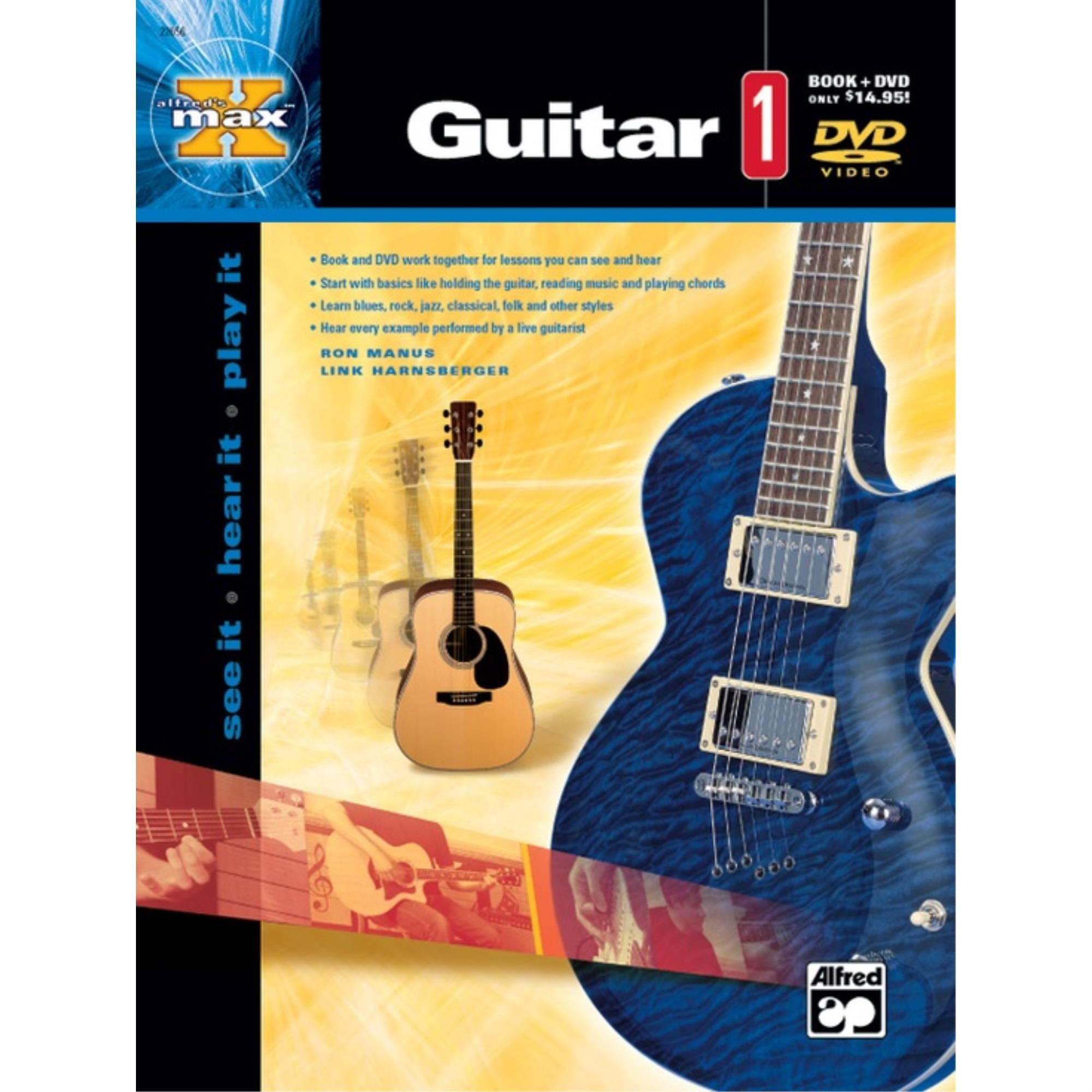 With Alfred's MAX™: Guitar 1, you’ll begin with learning the parts of the guitar, how to hold and tune the instrument, and the basics of reading music. The book & DVD continues by teaching the notes on all six strings, some basic three-string chords, and provides music examples and exercises every step of the way. The book and DVD work together, quickly and effectively communicating every important concept.