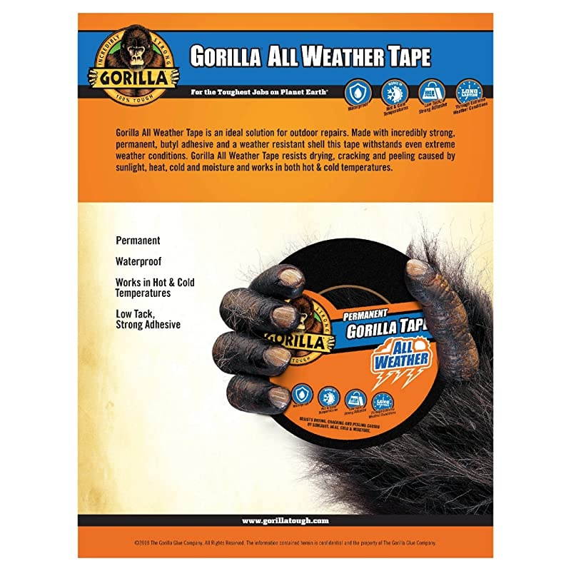 Size Name: 6 - Pack All Weather Waterproof Tape is an ideal solution for outdoor repairs. Made with incredibly strong, permanent, butyl adhesive and a weather resistant shell, this tape withstands even extreme weather conditions. All Weather Tape resists drying, cracking, and peeling caused by sunlight, heat, cold, and moisture and works in both hot & cold temperatures. Use like any other tape. Tear Tape by hand or cut to size with a knife or scissors. Apply the tape carefully, smoothing out any pockets or rolls. Thats it. Enjoy the strength and durability of Tape! For best results, apply to a clean surface free of dust, dirt, and debris. Great for tarps, plastic sheeting, roofs, vents, RV's, and all general purpose heavy duty repairs. All Weather Tape contains a highly concentrated rubber based adhesive and sticks to most plastics, including polyethylene (PE) and polypropylene (PP). All Weather Tape does not work on materials with high oil or plasticizer content, such as EPDM rubber or PVC. An acrylic tape, such as Crystal Clear Tape, may be better suited for these materials.