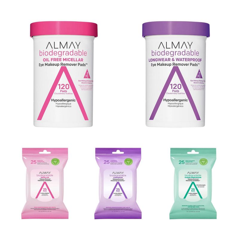 Effortless makeup removal just got a lot easier on your eyes—and the environment! With Almay Biodegradable Oil Free Micellar Eye Makeup Remover Pads™, you can instantly and neatly wipe away eye makeup in one step without leaving behind any greasy residue. Made from 100% biodegradable fibers, each pad is designed to gently and effectively sweep away makeup without pulling or tugging on your delicate eye area. The secret to our efficacious oil-free cleansing lies in the micellar molecules that lift off makeup, dirt, and oil from your skin and onto the pad. Not only is your eye area left clean (no need to rinse or cleanse!), skin feels soft and soothed. What’s more, these petite rounds are suitable for sensitive eyes and contact lens wearers, so throw a pack in your bag for guilt-free cleansing on the go! Formulated without added parabens, phthalates, SLS, DMDM Hydantoin, formaldehydes, and Triclosan. As always, hypoallergenic. Ophthalmologist tested. Clean. Cruelty free. Fragrance free.