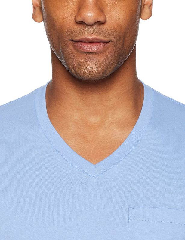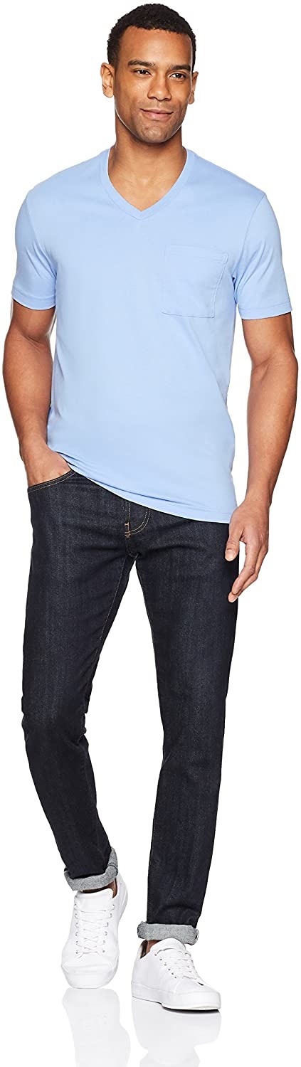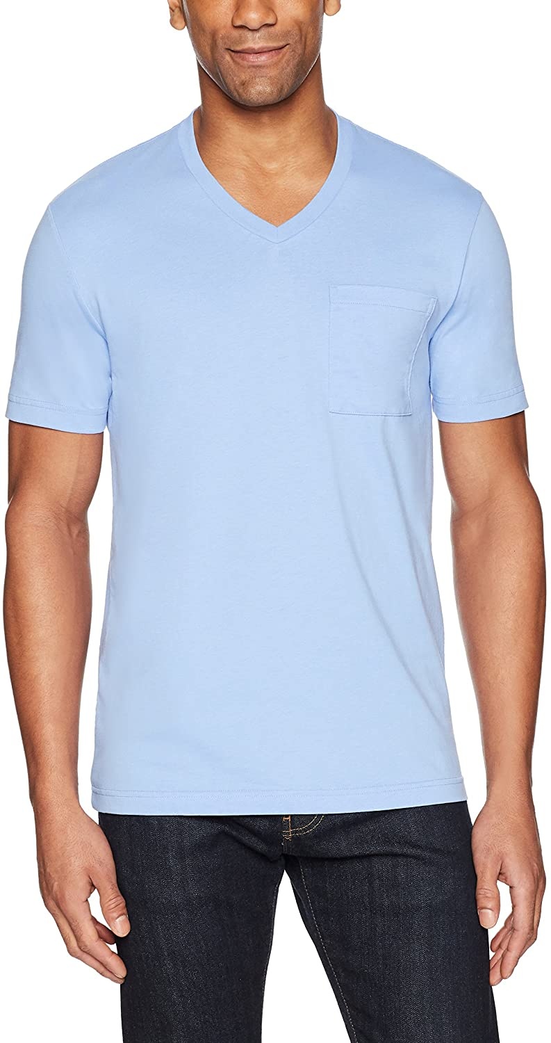 An Amazon brand - Great for layering or wearing alone, this smooth cotton T-shirt features a ribbed V-neck and short sleeves. Made in our Signature Tumbled Cotton for a soft, yet sturdy, hand. We utilize a unique Heritage Wash to give our garments a custom, lived-in feel right away. Goodthreads’ collection of men’s clothing crafted with care takes wear-everywhere apparel to the next level. Create can’t-miss pairings with long- and short-sleeve button-down shirts in standard and slim fits, plus chino pants and shorts made from wrinkle-free non-iron fabric. With these classics—and T-shirts, polo shirts, and outerwear to round out your look—Goodthreads is your go-to for wardrobe staples with the style you want.