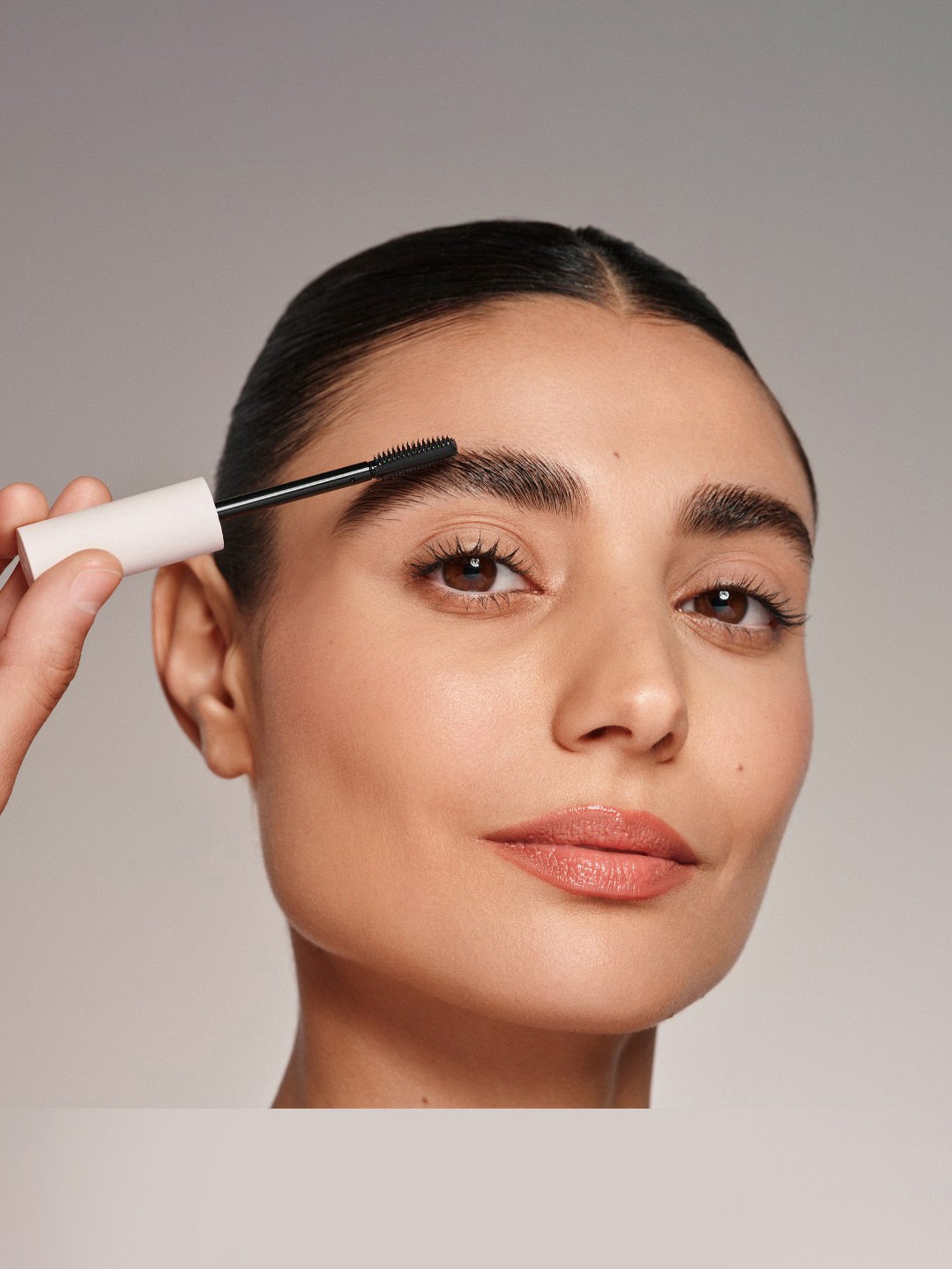 Step 1 - Use alone or as the finishing step in your brow routine to lock brows in place. Step 2 - Start by using the long bristle comb to separate and tame hair,next use the short bristle comb to shape and sculpt hairs into place. |