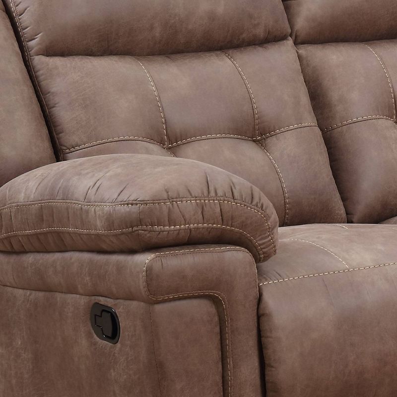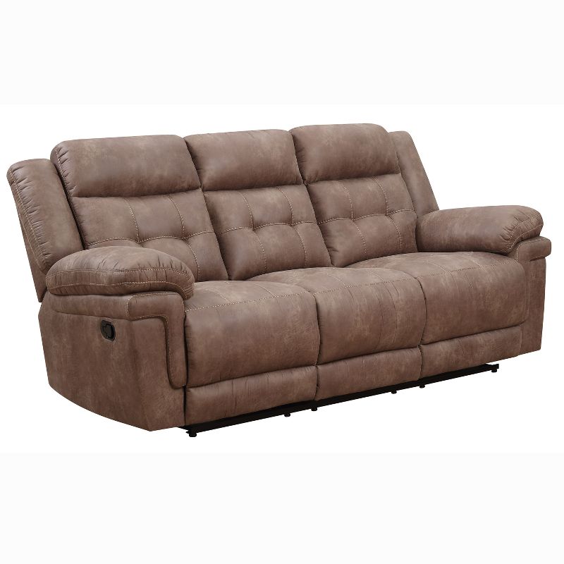 Recline in comfort with this Anastasia Recliner Sofa from Steve Silver Co. Designed with a luxe feel and rich, cocoa-colored upholstery, this upholstered recliner sofa offers padded comfort to help you sit back and relax. Whether you're enjoying a movie with friends or family or just kicking back alone to relax after a long day, you'll love adding comfort and style to your space with this brown recliner sofa.