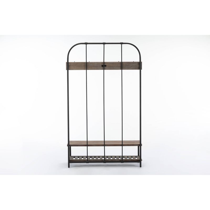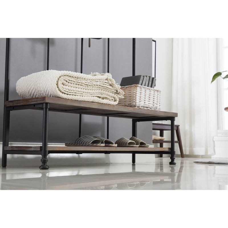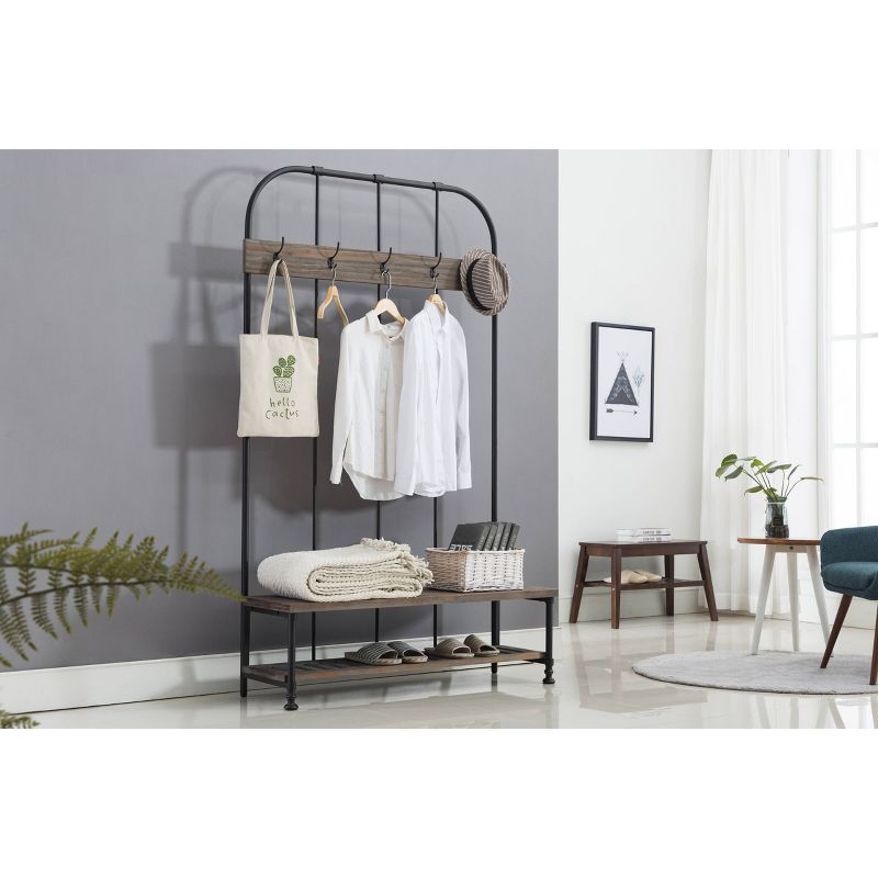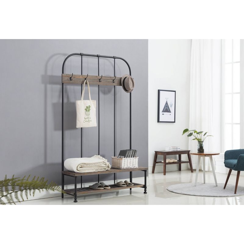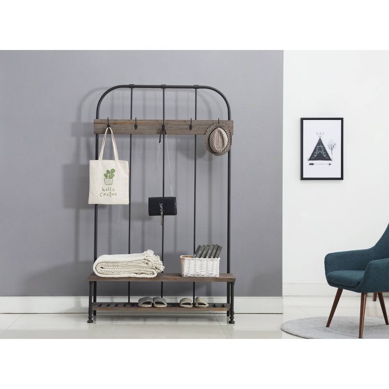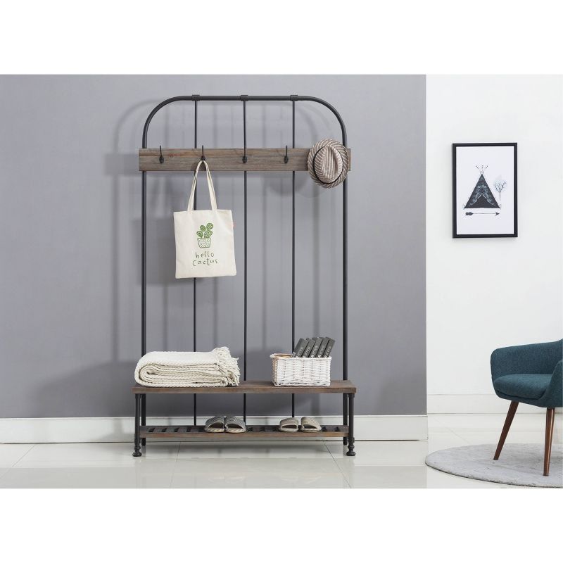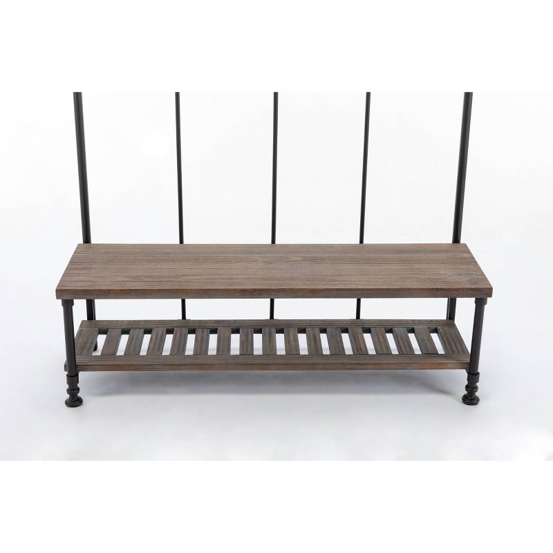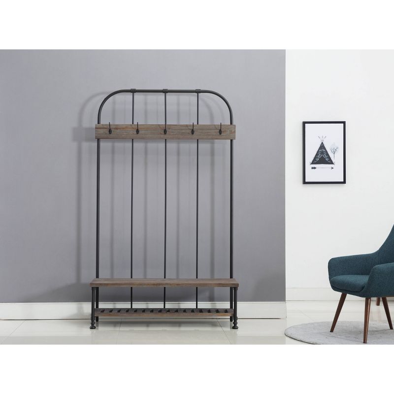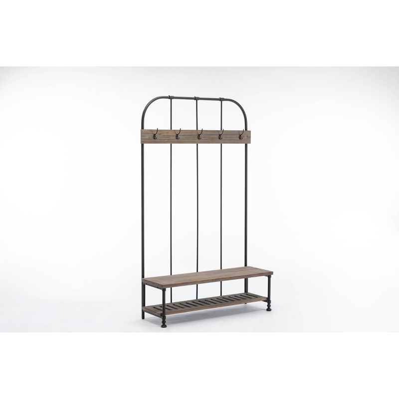 Think of the Annie Hall Tree as your family's personal assistant: it organizes your entryway or mudroom effortlessly with its storage features. As kids and adults come home, they'll hang hats, coats, purses, and scarves on the five hanging hooks. A lower slatted shelf stores shoes or backpacks, while the bench provides additional space for other accessories. Crafted from fir wood and metal, the Annie Hall Tree is a stylish, must-have piece in your organizational arsenal.